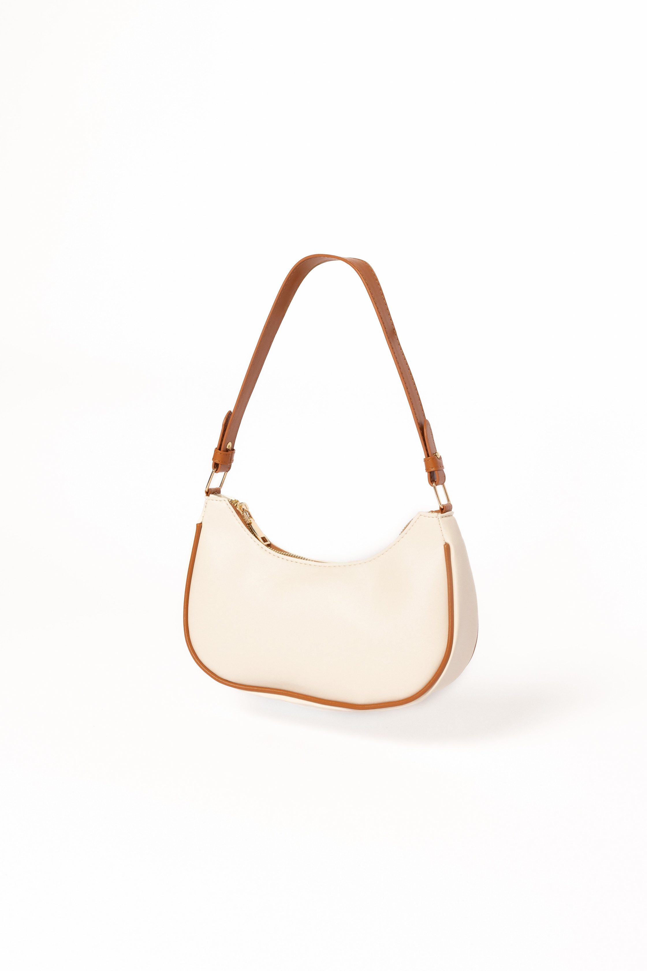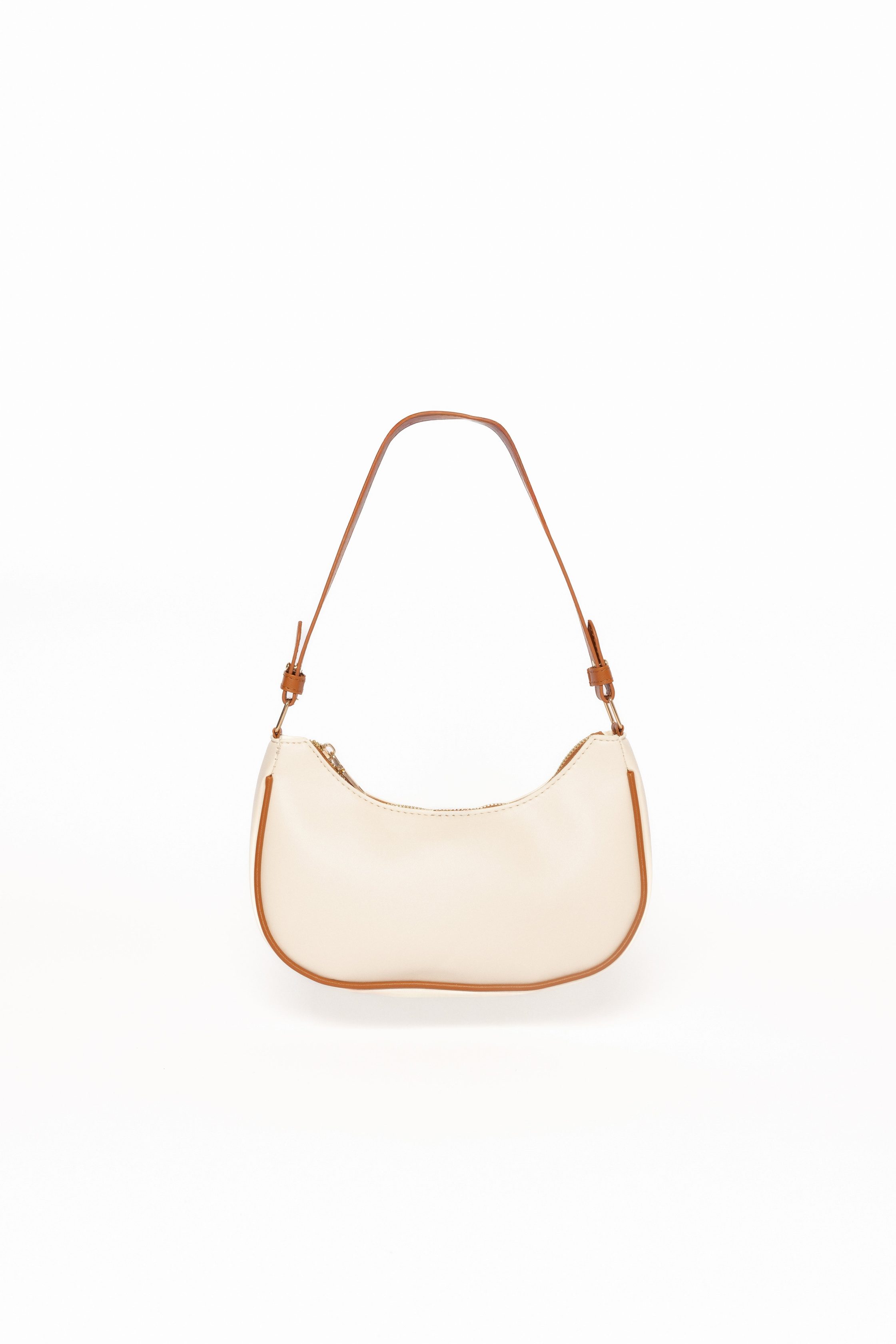 DETAILS A timeless accessory that combines effortless chic with practical design. Featuring a single handle for easy, grab-and-go convenience, adds a touch of modern to any outfit. single handle open top with zip closure contrast tan trim detail internal pocket with zip closure lined material – 100% polyurethane MEASUR