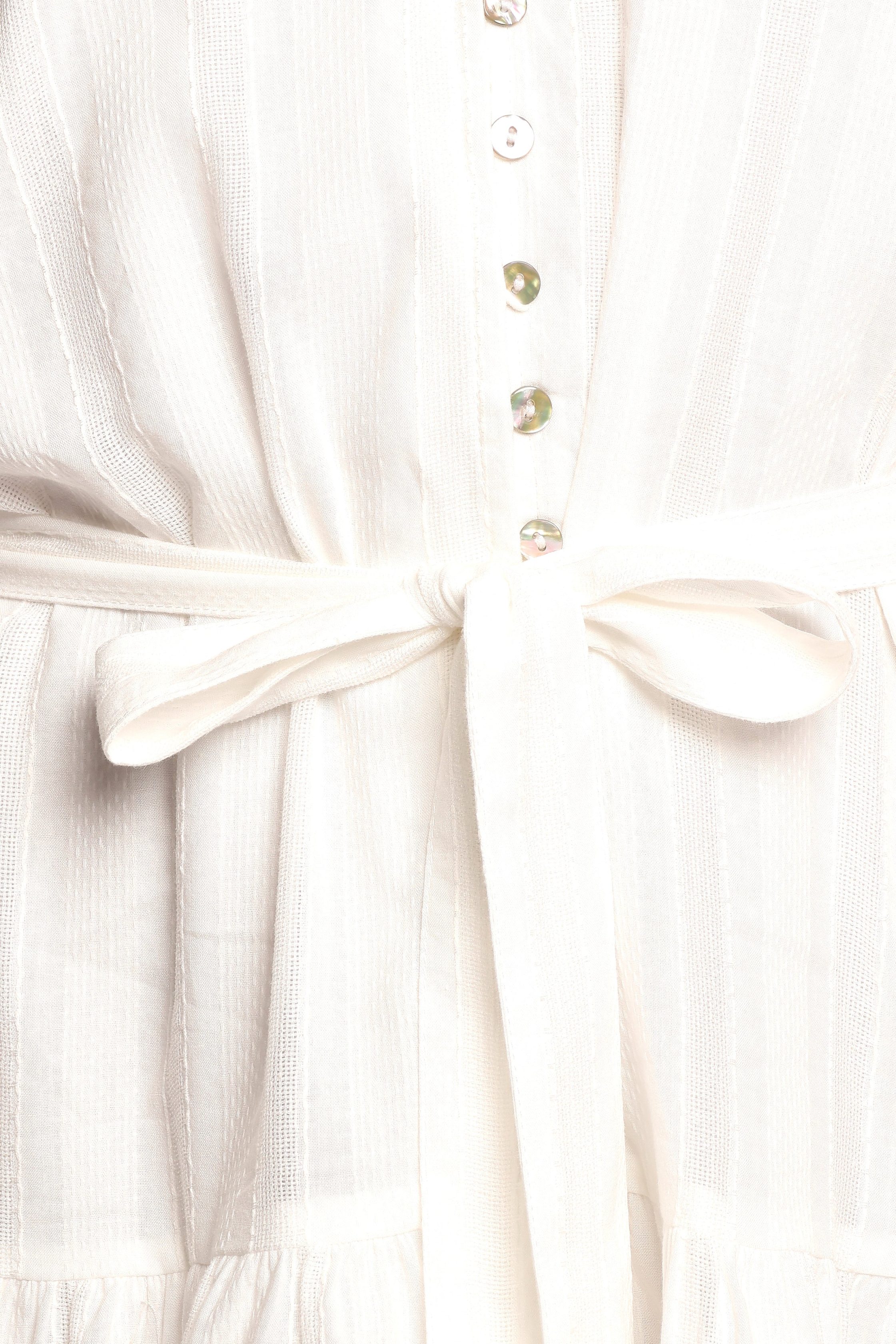 DETAILS The Alex Mini Dress in White is your new go-to for effortless chic. With its flattering mini length and timeless v-neckline, the functional buttons down the front and a detachable belt allow you to personalize your fit, while the delicate lace trim detail elevates the look with a hint of elegance. mini length v