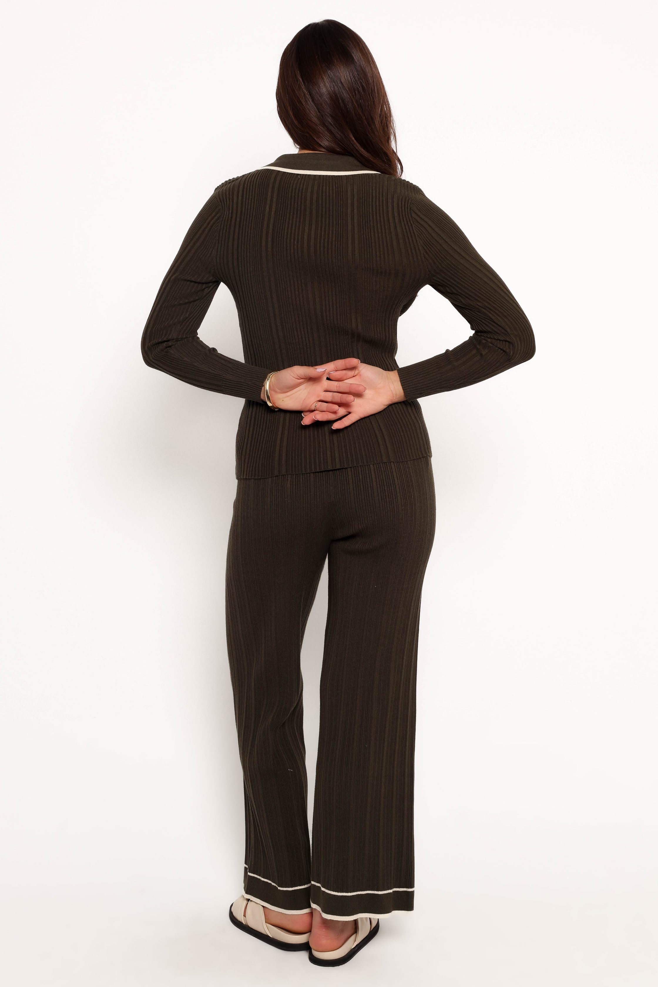 Say goodbye to those days of choosing between comfort and style. Our high waisted knit pants are designed to offer the best of both worlds. Whether you're lounging at home, running errands, or meeting friends for brunch, these pants are the perfect choice. high waisted elastic waistband drawstring tie close stretch ribbed fabric unlined material – 55% viscose / 45% nylon SIZING model is 5' 7" and wears a Size S model stats: bust – 33", waist – 26", hips – 38" GARMENT CARE I'm delicate ♡ cold hand wash separately