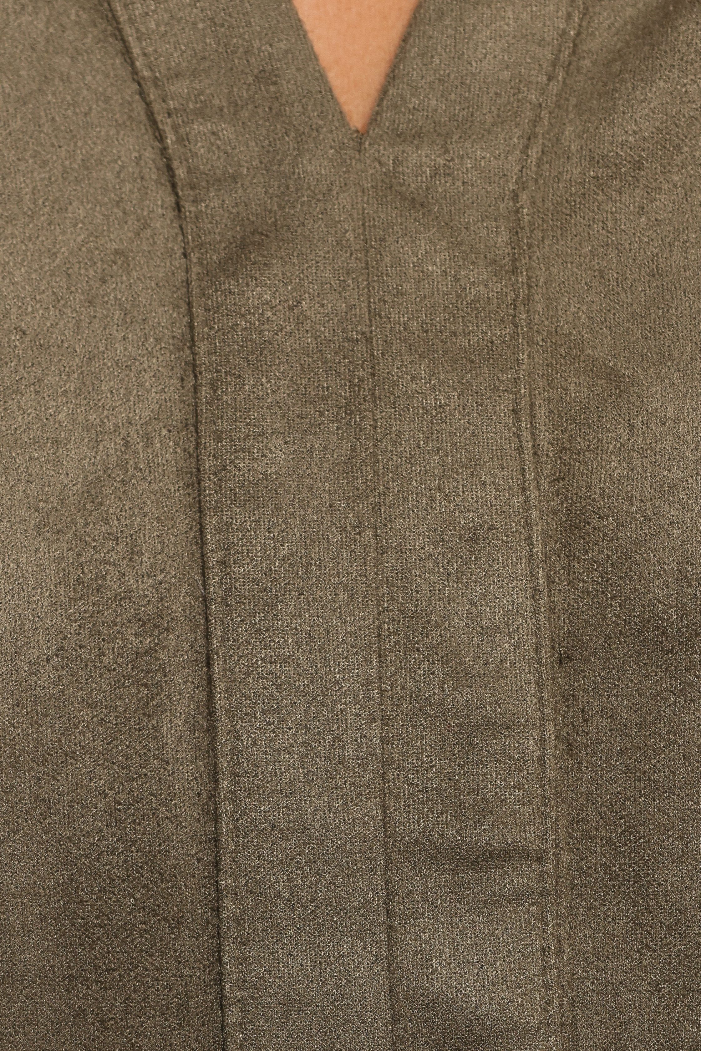 Imagine the perfect blend of elegance and casual chic. Designed to turn heads and make you feel effortlessly stylish, this dress is essential for any fashion-forward wardrobe. mini length v neckline short ruffle sleeves suede feel fabric relaxed fit unlined material – 92% polyester / 8% spandex SIZING model is 5' 7" and wears a Size S model stats: bust – 33", waist – 26", hips – 38" GARMENT CARE cold hand wash separately
