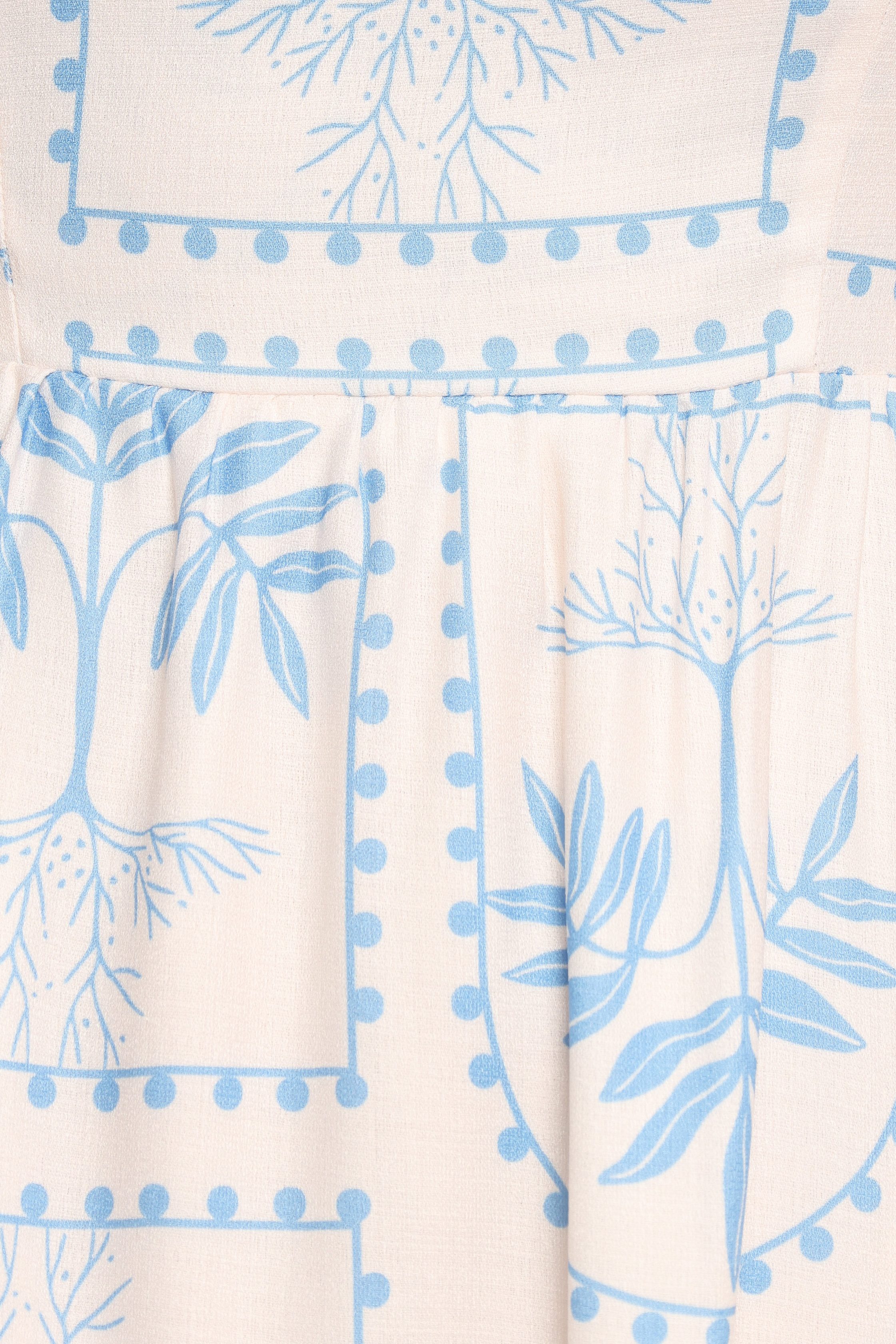 DETAILS This fashion-forward piece combines classic charm with modern details, perfect for the trendsetter looking to make a statement. The midi length and a-line skirt design create an effortlessly chic silhouette that flatters every figure, while the blue floral print adds a touch of timeless beauty. midi length squa