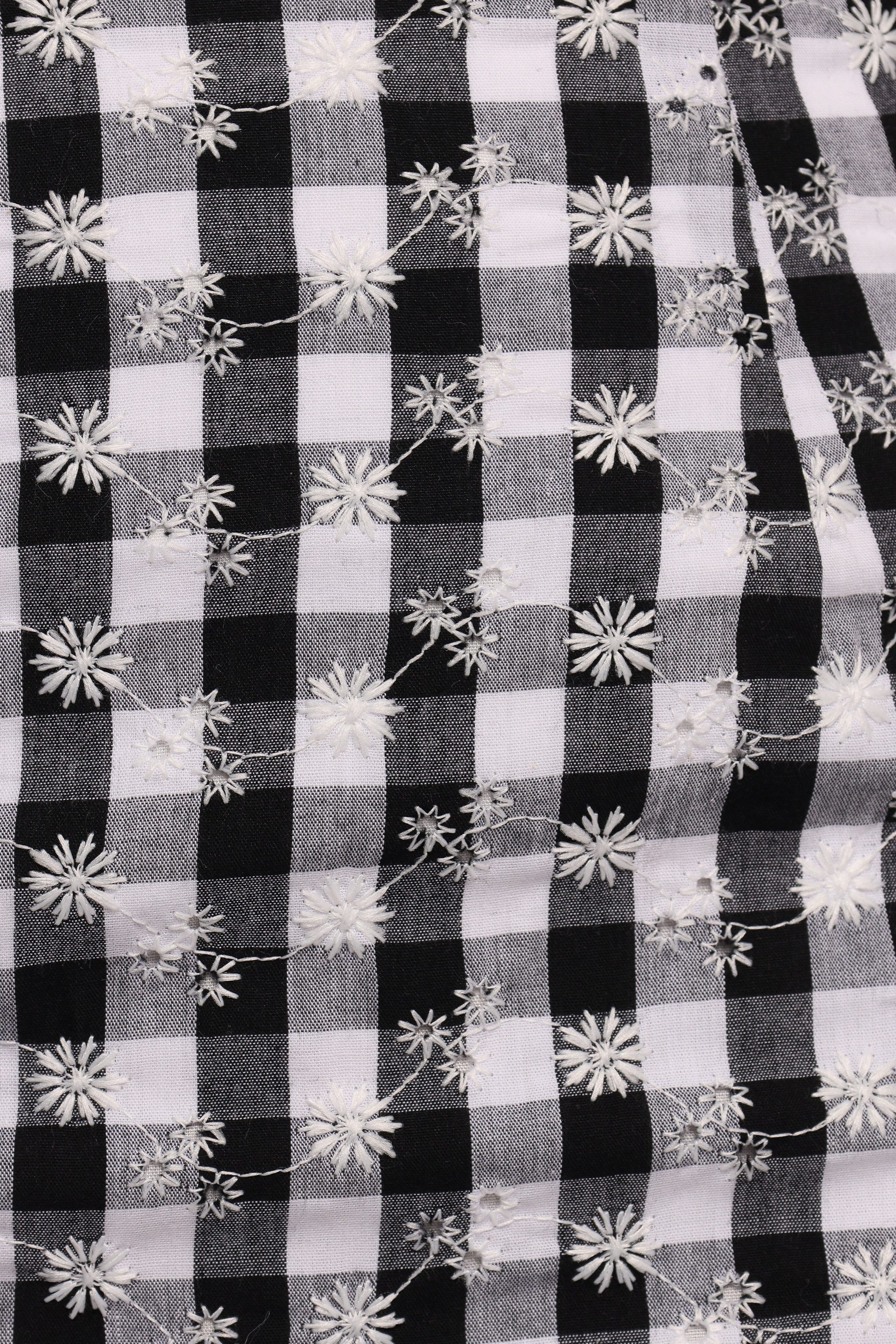 DETAILS Step up your style game with our chic mini skirt, designed to turn heads and keep you feeling fabulous all day long. The playful gingham print gives a nod to classic trends, while the intricate floral embroidery adds a touch of modern elegance. mini length back invisible zip gingham print floral embroidery feat