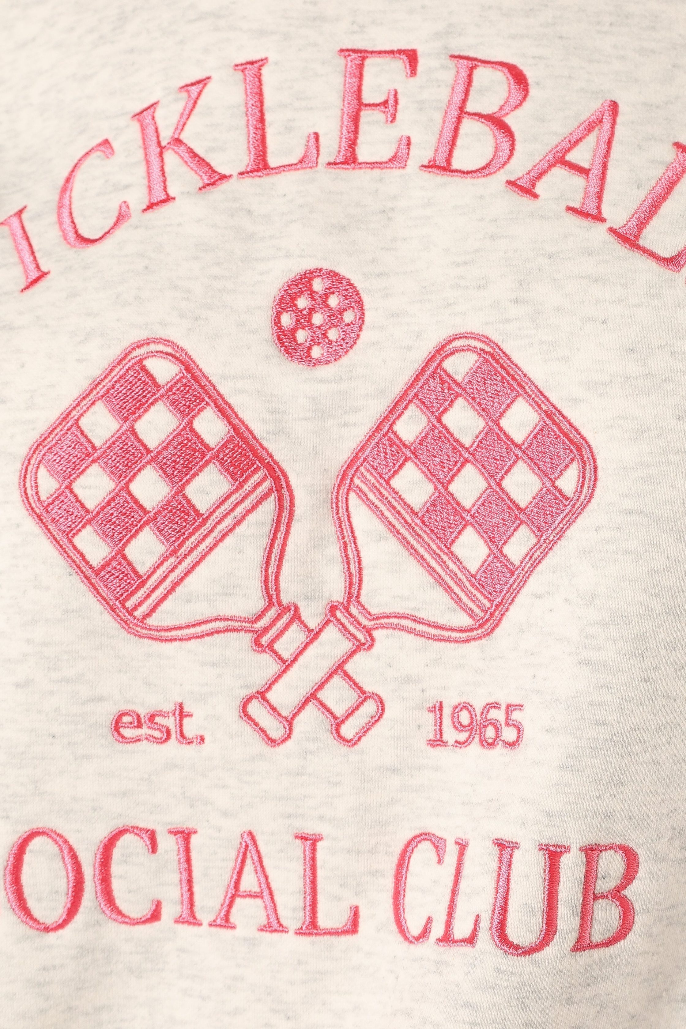 Introducing our new, ultra-cozy crewneck style sweatshirt! This essential item is a must for any chilly day. Crafted with a round neckline and long sleeves with ribbed cuffs, this relaxed fit piece has just the right level of structure. crewneck style sweatshirt round neckline long sleeves with ribbed cuffs pickleball embroidered feature relaxed fit unlined material -32% cotton / 68% polyester SIZING model is 5' 7" and wears a Size S model stats: bust – 31.5", waist – 25", hips – 32.5" GARMENT CARE cold hand wash separately