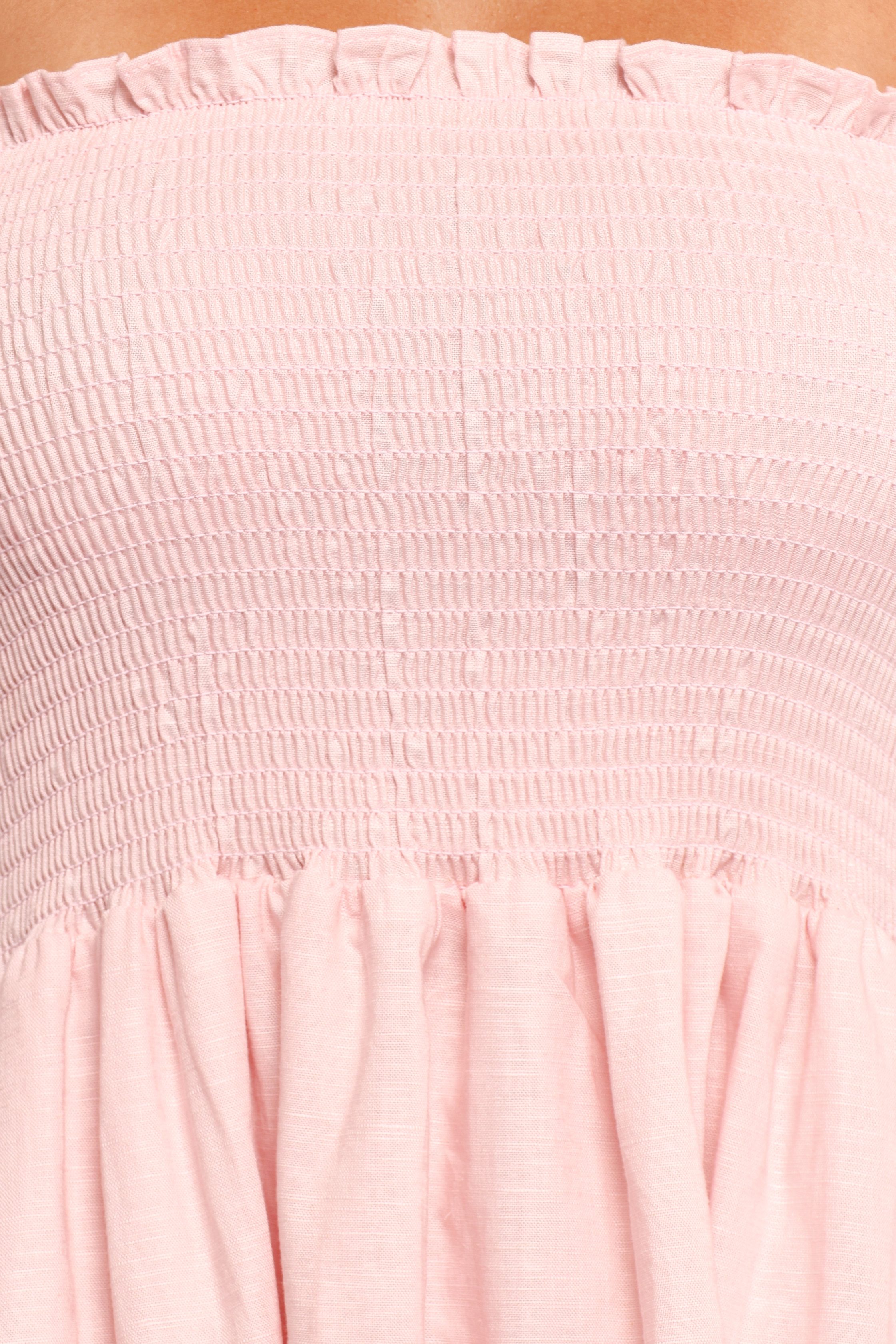 DETAILS This off shoulder midi dress is an easy-to-wear piece that will keep you feeling feminine and elegant. The long sleeves feature elasticised shoulders, complete with a ruffle cuff for added charm. The shirred bodice ensures a comfortable fit, while the functional pockets provide extra convenience. off shoulder s