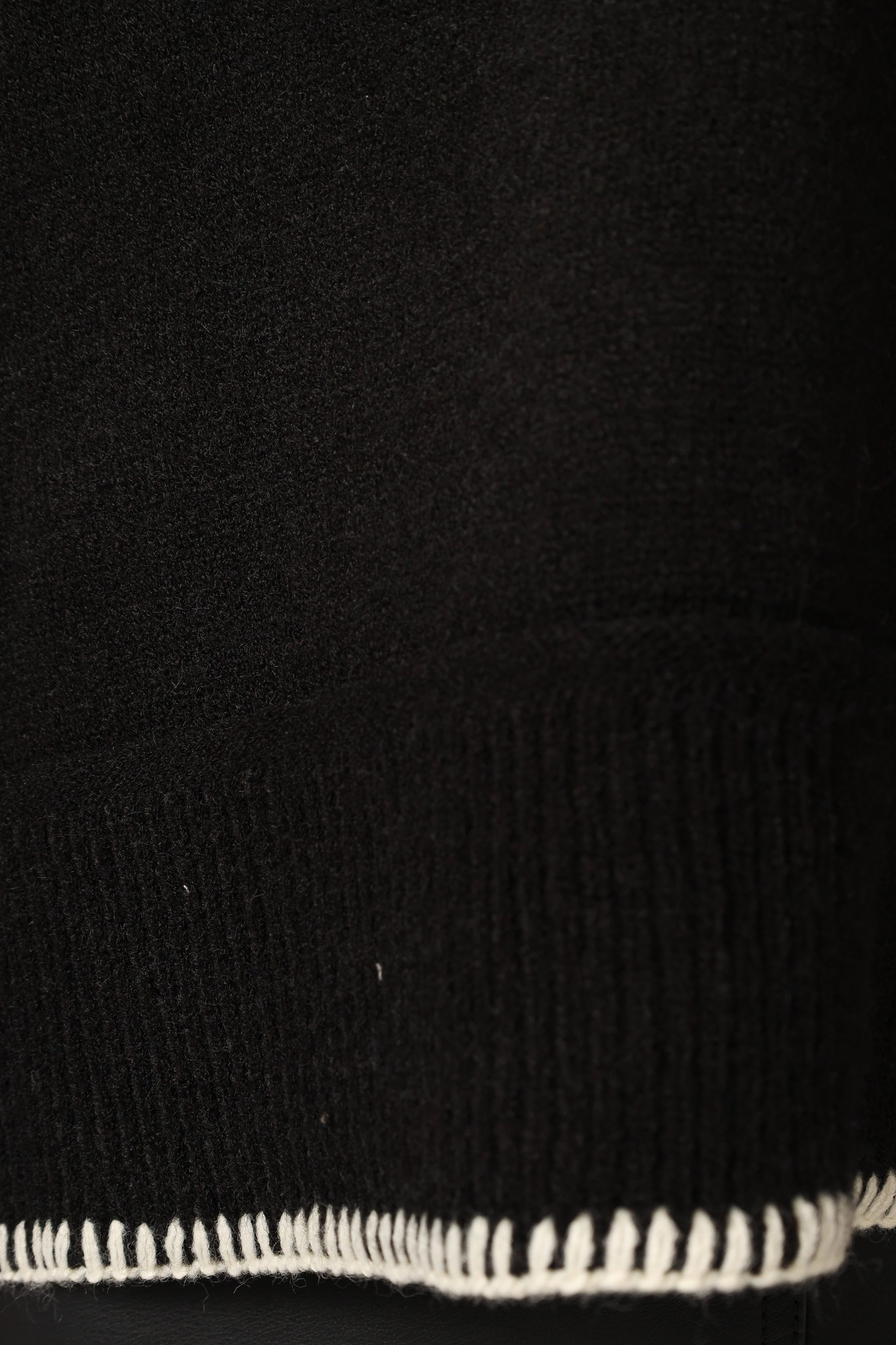 DETAIL Wrap up in the cozy chic vibes of our Elise Knit Sweater! With its sleek spread collar and long sleeves adorned with ribbed cuffs, this sweater merges classic charm with modern edge. The white contrast stitch pops against the fabric in a voguish spectacle, while the side split detail adds an effortless flair to your every move. spread collar long sleeves with ribbed cuffs side split detail white contrast stitch ribbed hemline soft feel relaxed fit unlined material – 42% acrylic / 30% polyester / 28% nylon SIZING model is 5' 6" and wears a Size XS model stats: bust – 34", waist – 24", hips – 35" GARMENT CARE I'm delicate ♡ cold hand wash separately