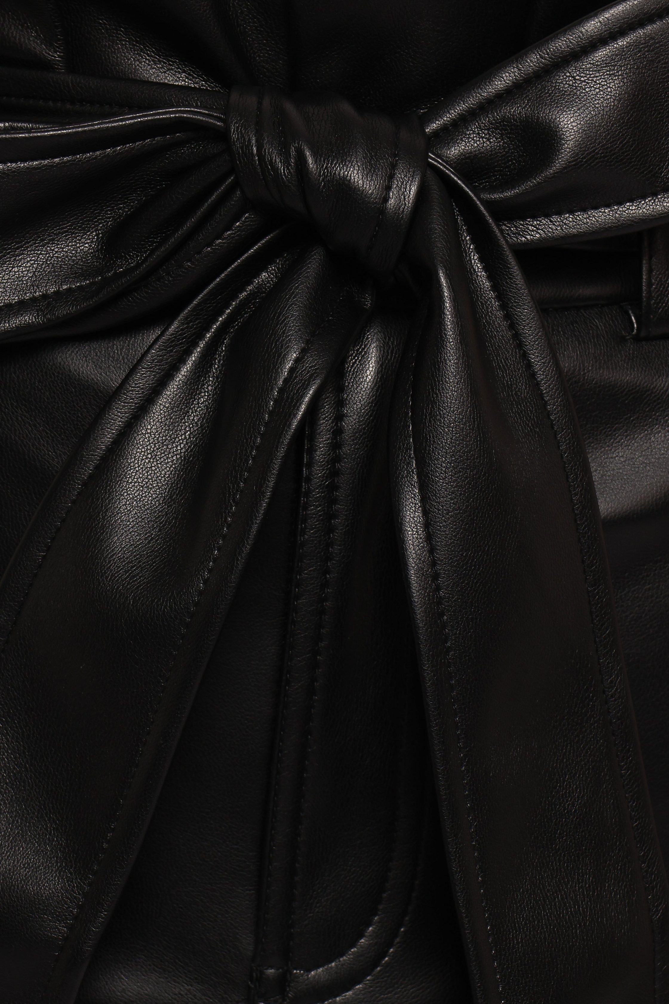 T his stylish skirt is designed for those who appreciate a modern twist on classic fashion. The pleated waist detail adds a touch of structure, while the removable waist tie lets you cinch it for a personalised fit. midi length skirt pleated waist detail removable waist tie front zip with clasp close back hem split feature unlined material – 100% pu SIZING studio model is 5' 6" and wears a Size XS model stats: bust – 34", waist – 24", hips – 35" GARMENT CARE cold hand wash separately