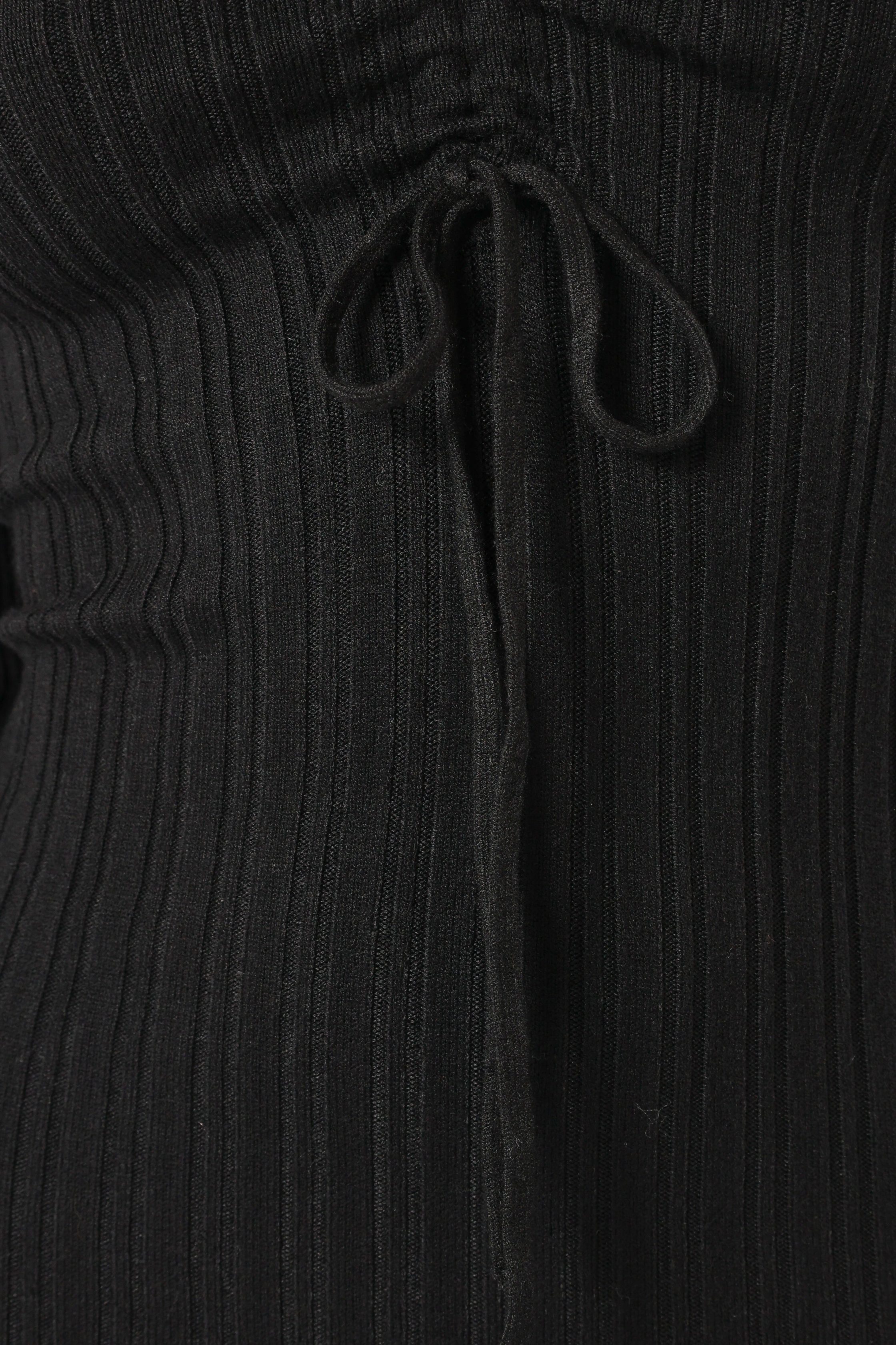 This midi piece is designed to flatter your figure, featuring a tasteful v neckline and long sleeves that provide both coverage and sophistication. Crafted from a stretch ribbed knit, it promises a close yet comfortable fit that adapts to your natural silhouette. midi length v neckline long sleeves front drawstring gathered detail stretch ribbed knit side split soft feel unlined material – 45% rayon / 27% nylon / 28% pbt SIZING model is 5' 7" and wears a size XS/S model stats: bust – 33", waist – 26", hips – 38" GARMENT CARE cold hand wash separately