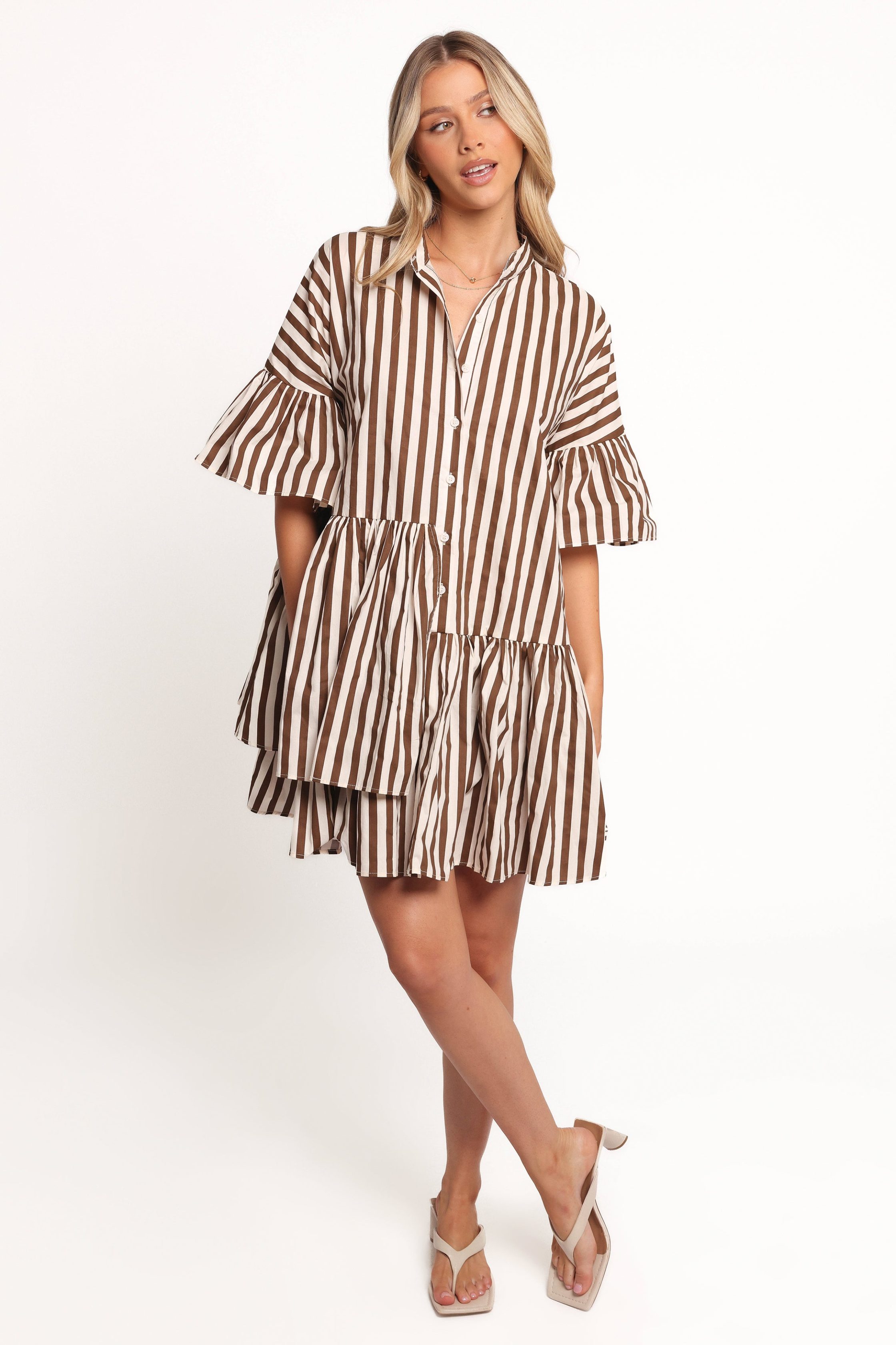 DETAILS Designed with a mini length and short sleeves, this chic dress is perfect for warmer days or casual outings when you want to keep it cool yet stylish. Its functional button-down design adds versatility, allowing you to adjust the neckline or layer it for a unique look. mini length short sleeve functional button