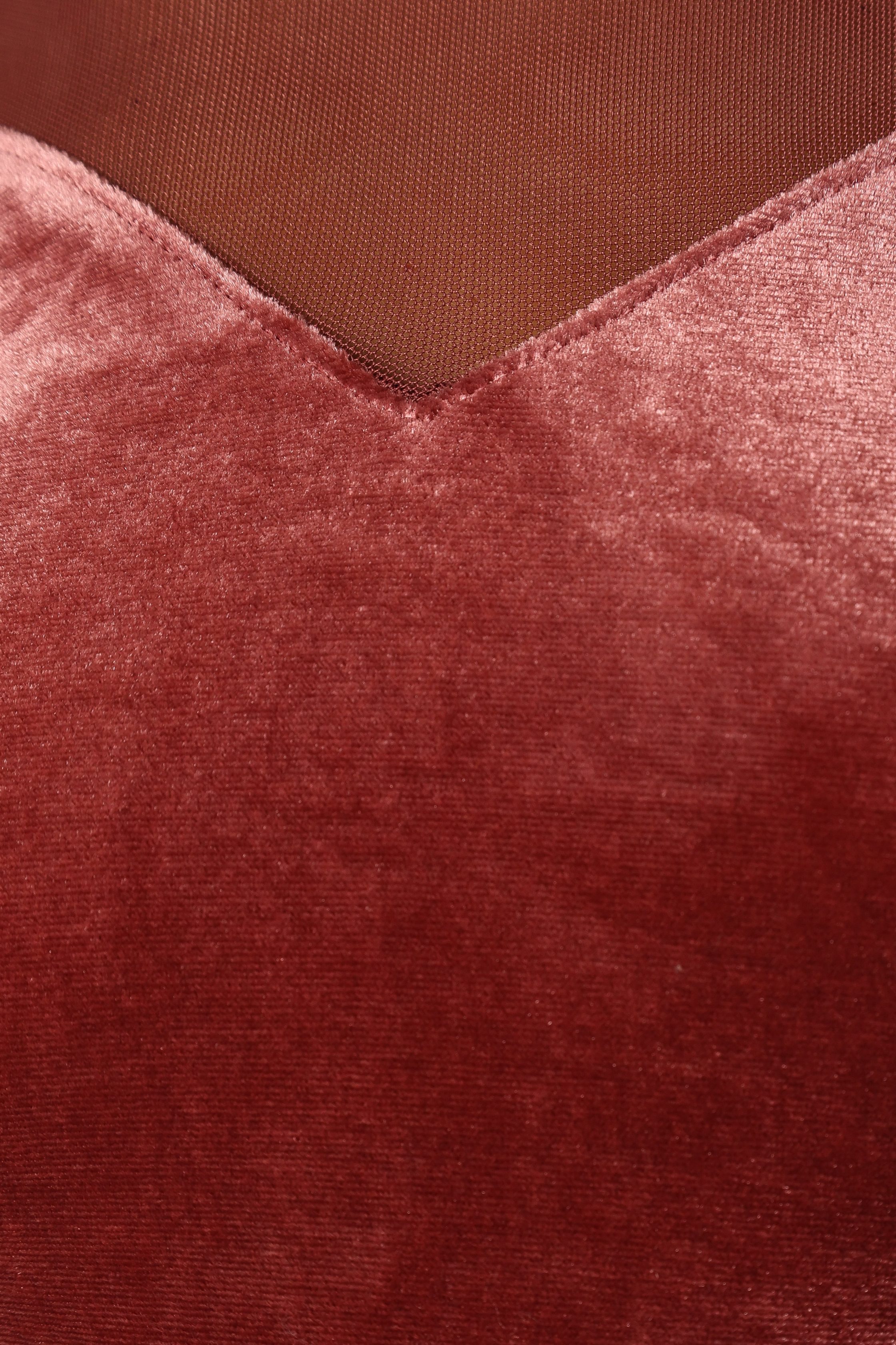 Channel your inner elegance with our Jessica Longsleeve Maxi Dress in classic mauve. This sublime piece features a high mesh neckline for an air of sophisticated allure, paired with long sleeves for a touch of traditional charm. The dress boasts a front split detail, adding a modern twist and showcasing a hint of skin. maxi length high mesh neckline long sleeves front split detail soft velvet feel pull on design unlined material – 92% polyester / 8% spandex SIZING model is 5' 6" and wears a Size S model stats: bust – 31", waist – 23", hips – 34" GARMENT CARE I'm delicate ‚ô° cold hand wash separately