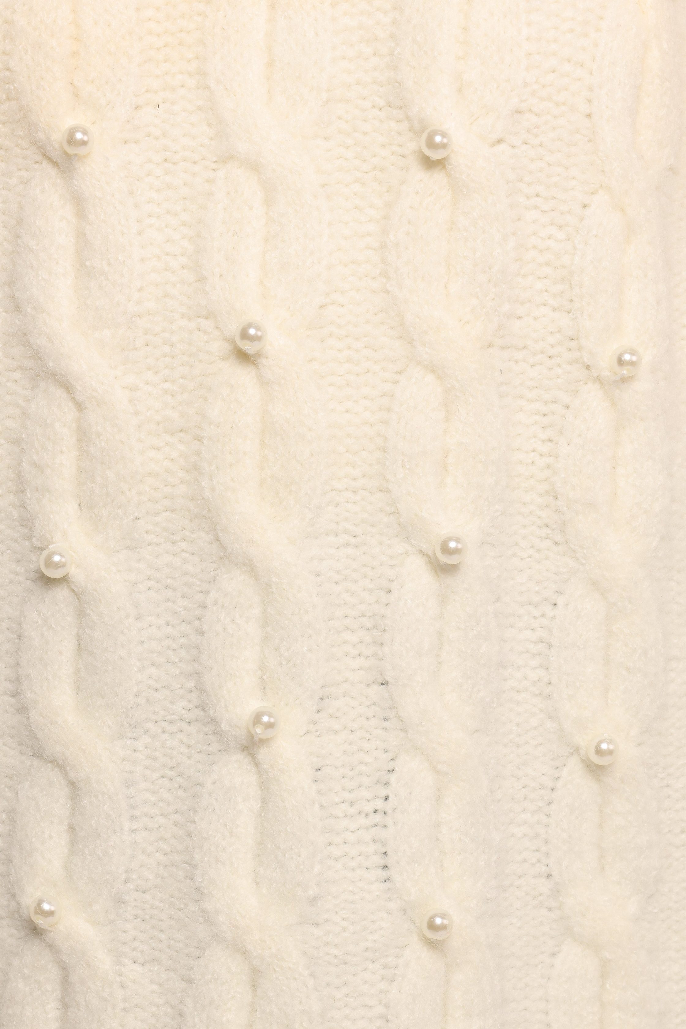 Kalai Cable Knit Pearl Detail Knit Sweater – Cream