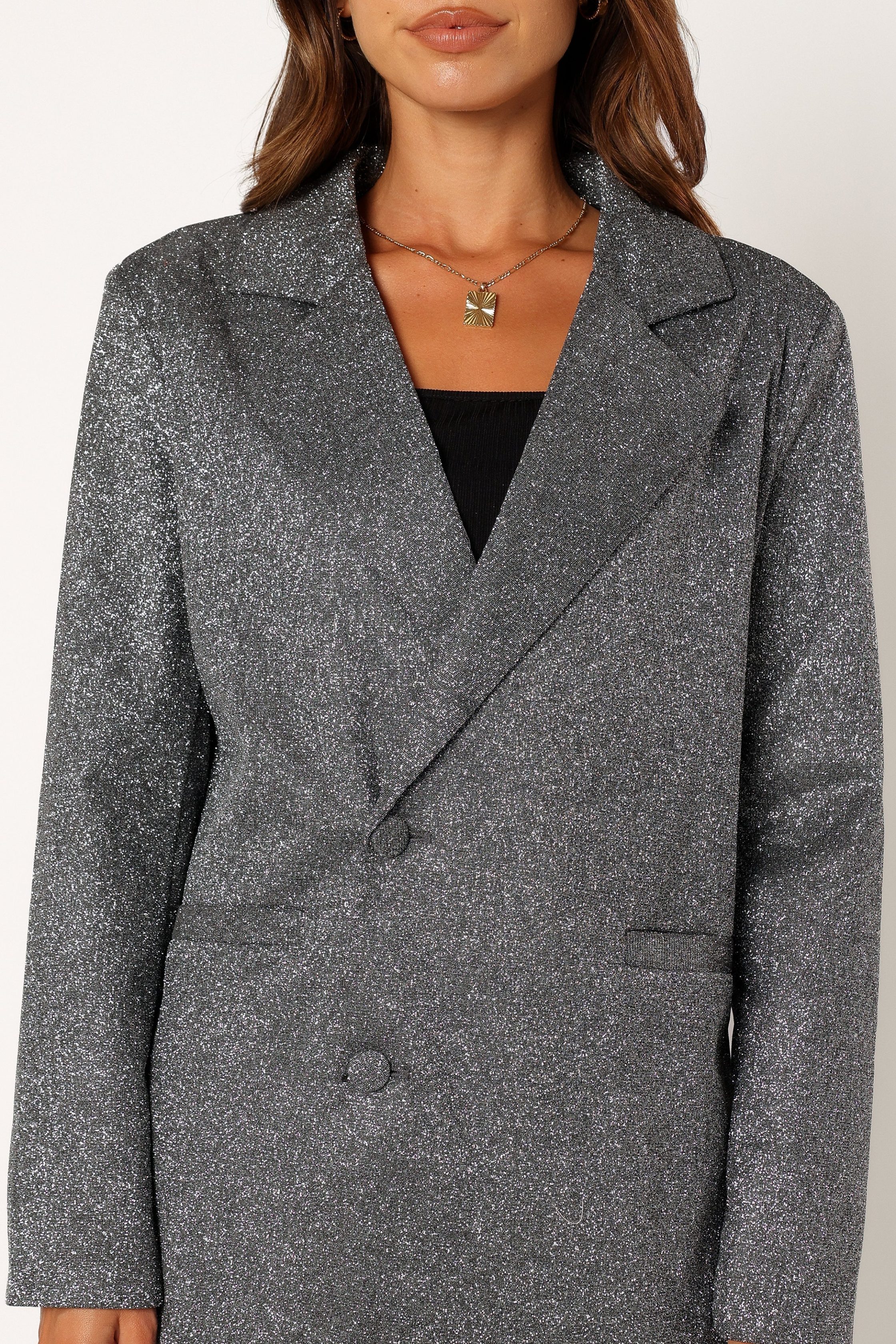 The Kaliyah Blazer is a must-have heading into this holiday party season. With its long sleeves, functional buttons, and front pockets, this blazer is both stylish and practical. But what sets it apart is its shimmery material that catches the light and adds an extra touch of glamour to your look. collared long sleeves functional buttons front pockets sparkly print shoulder pads lined material – 100% polyester SIZING model is 5' 6" and wears a Size XS model stats: bust – 31", waist – 23", hips – 34" GARMENT CARE cold gentle hand wash separately