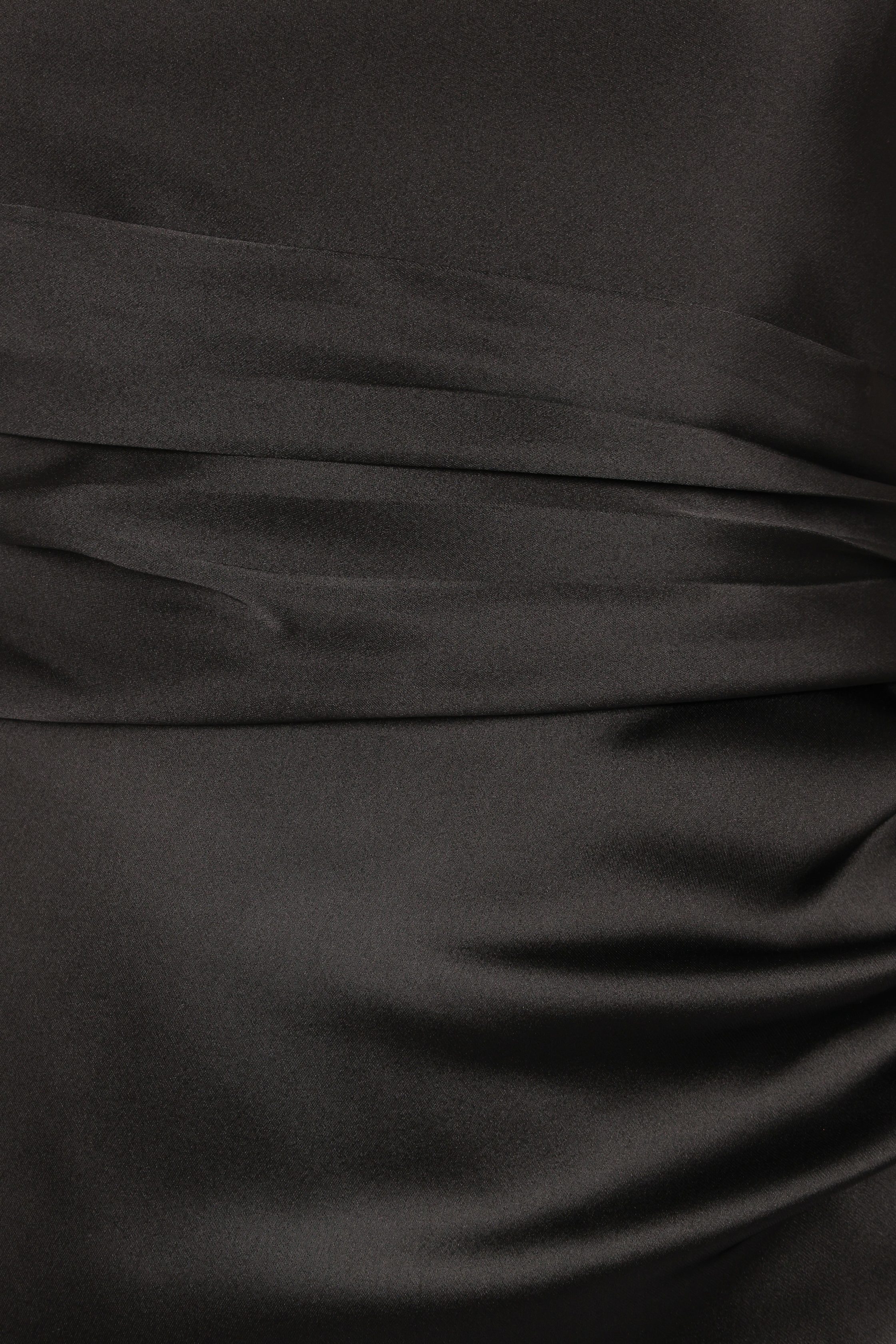 This dress is an ideal choice for any formal event, from weddings to galas or even a black-tie affair. Pair it with statement earrings and strappy heels for a glamorous look that exudes confidence and elegance. strapless design maxi length straight neckline pleat feature on bust back shirred panel invisible back zip front split detail satin sheen finish partially lined material – 93% polyester / 7% spandex SIZING Studio model is 5' 10" and wears a Size S model stats: bust – 32", waist – 24.5", hips – 35" Modern Romance Campaign Melita is 5' 8" and wears a Size S model stats: bust – 36", waist – 25", hips – 36" Paris is 5' 10" and wears a Size XL model stats: bust – 40", waist – 33", hips – 48" GARMENT CARE cold hand wash separately