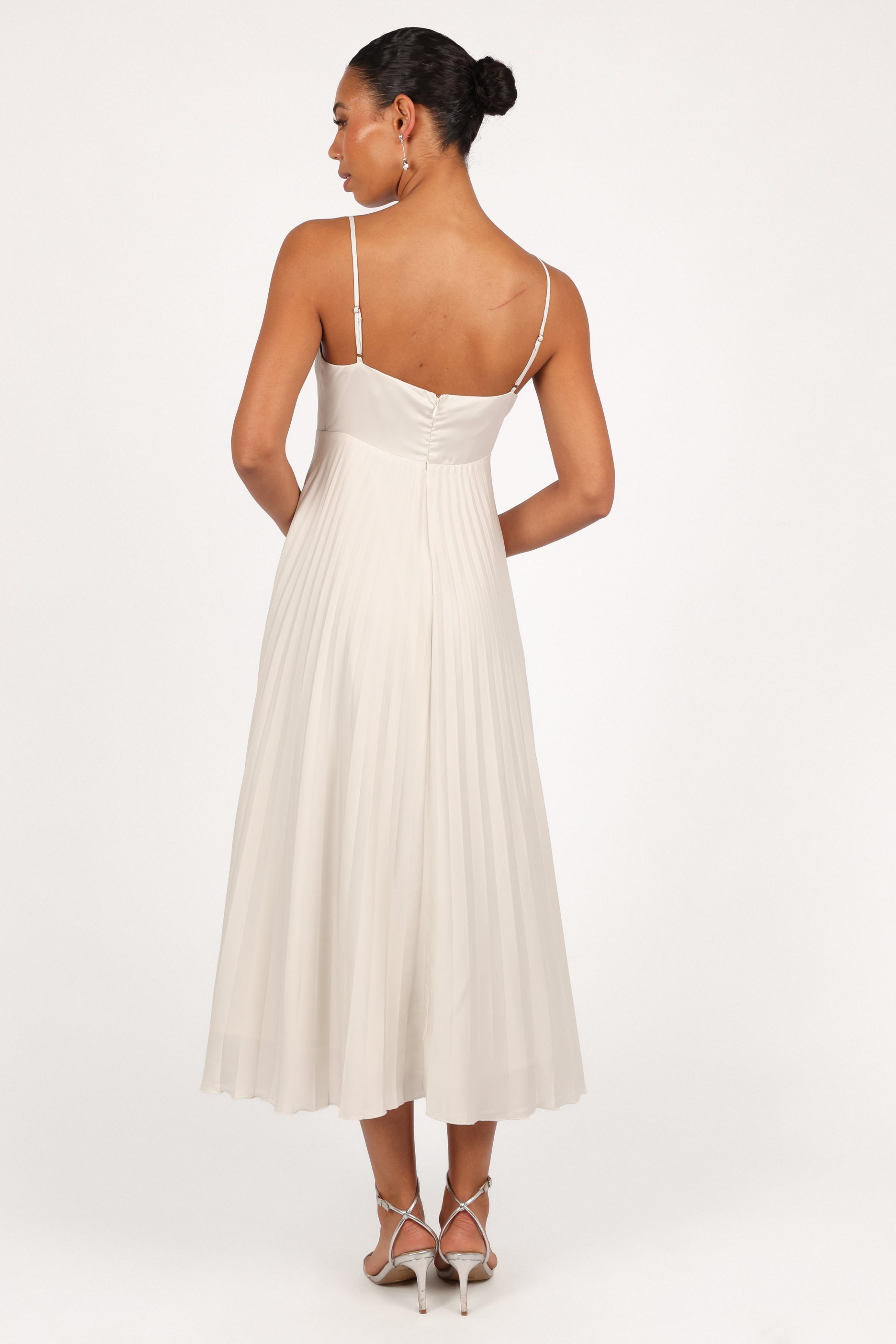 Imagine yourself in a dress that glides with every step, thanks to the luxurious satin sheen finish. The pleated skirt feature adds a touch of sophistication, creating a beautiful flow that captures attention and admiration. The straight neckline offers a timeless charm, perfectly balancing modern trends with classic elegance. maxi length straight neckline thin adjustable straps back invisible zip pleated skirt feature satin sheen finish lined material – 100% polyester SIZING Studio model is 5' 10" and wears a Size S model stats: bust – 32", waist – 24.5", hips – 35" Modern Romance Campaign Grace is 5' 5" and wears a Size XS model stats: bust – 31.5", waist – 25.5", hips – 37" GARMENT CARE cold hand wash separately