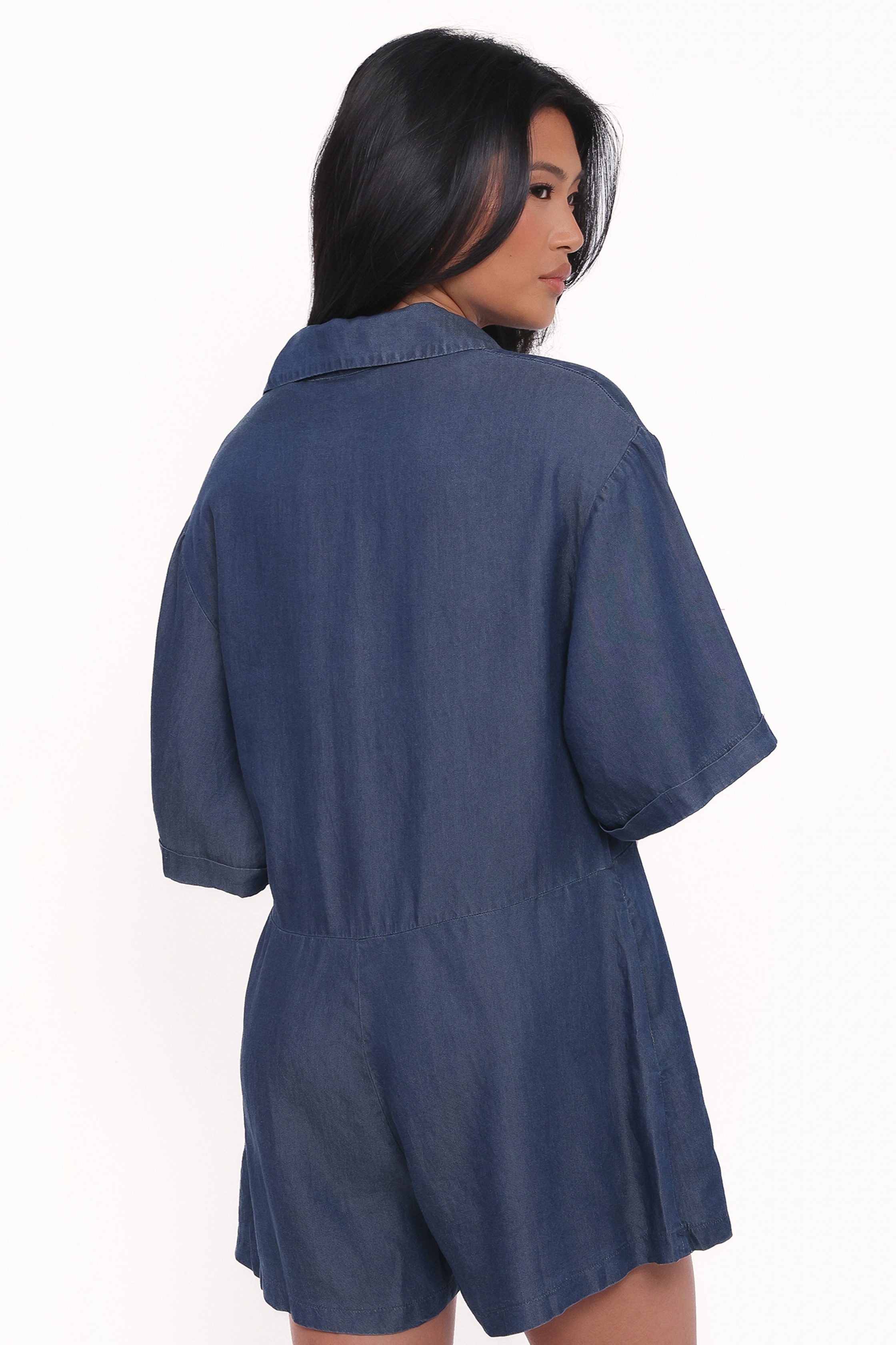 DETAILS Featuring a spread collar, a chic V-neckline, and short sleeves, this romper is designed for comfort and everyday ease while keeping your style on-point. The relaxed fit allows for all-day wear, while the functional button-down front adds a touch of versatility, perfect for layering or solo styling. spread coll