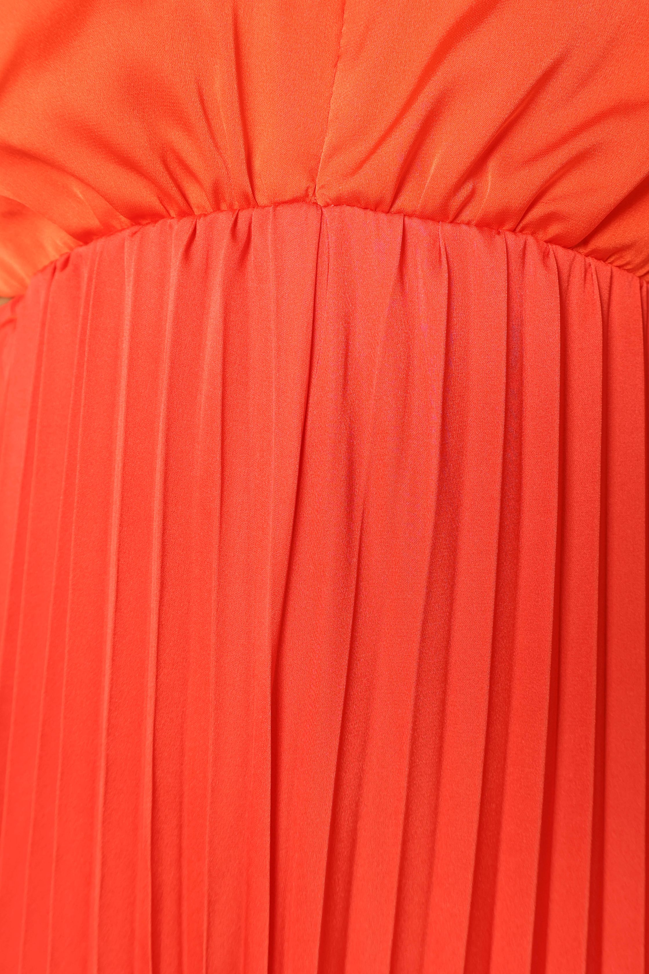 Welcome to the season of playful fashion with the Krista Jumpsuit! This trendy red to pink gradient piece features a V-neckline, long sleeves with elasticised cuffs and an invisible back zip. Plus, a unique back cut out feature and fine pleats detail add flair to the look. wide leg style jumpsuit v neckline long sleeves with elasticised cuff back invisible zip back cut out feature fine pleats detail gradient print design soft satin feel unlined material – 100% polyester SIZING model is 5' 7" and wears a Size S model stats: bust – 33", waist – 27", hips – 36" GARMENT CARE cold hand wash separately