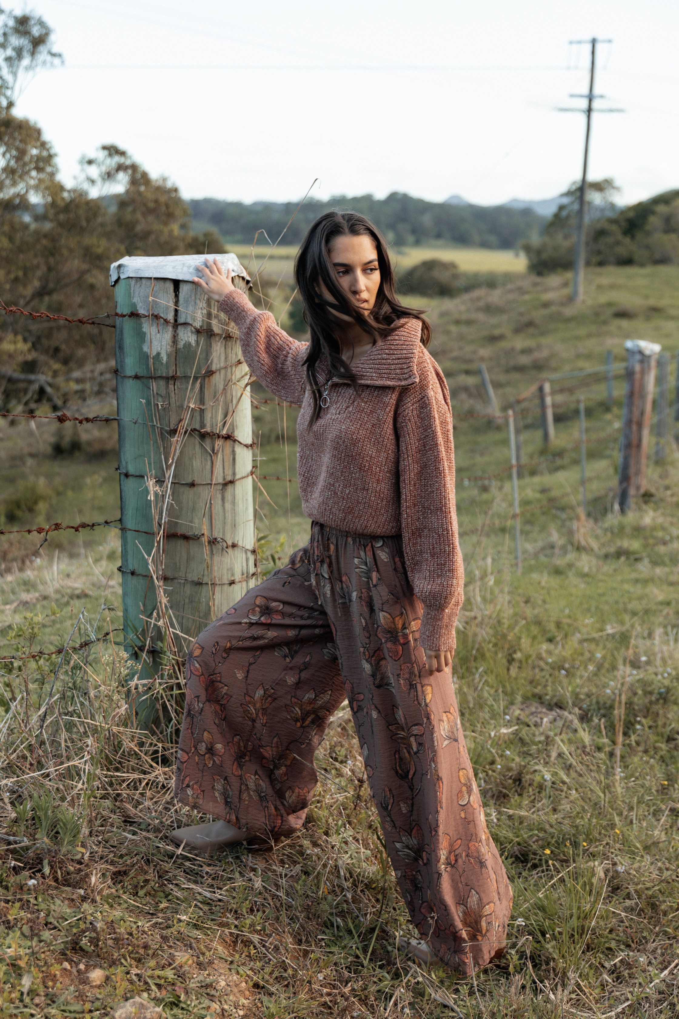 With an elasticized waistband and a drawstring tie closure, these pants are tailored to fit you just right, offering comfort without compromising on style. Perfect for the on-the-go modern woman who values both convenience and fashion. wide leg style pant elasticised waistband drawstring tie close functional front pockets floral print lined material – 65% cotton / 35% polyester SIZING studio model is 5' 7" and wears a Size S model stats: bust – 33", waist – 26", hips – 38" GARMENT CARE cold hand wash separately