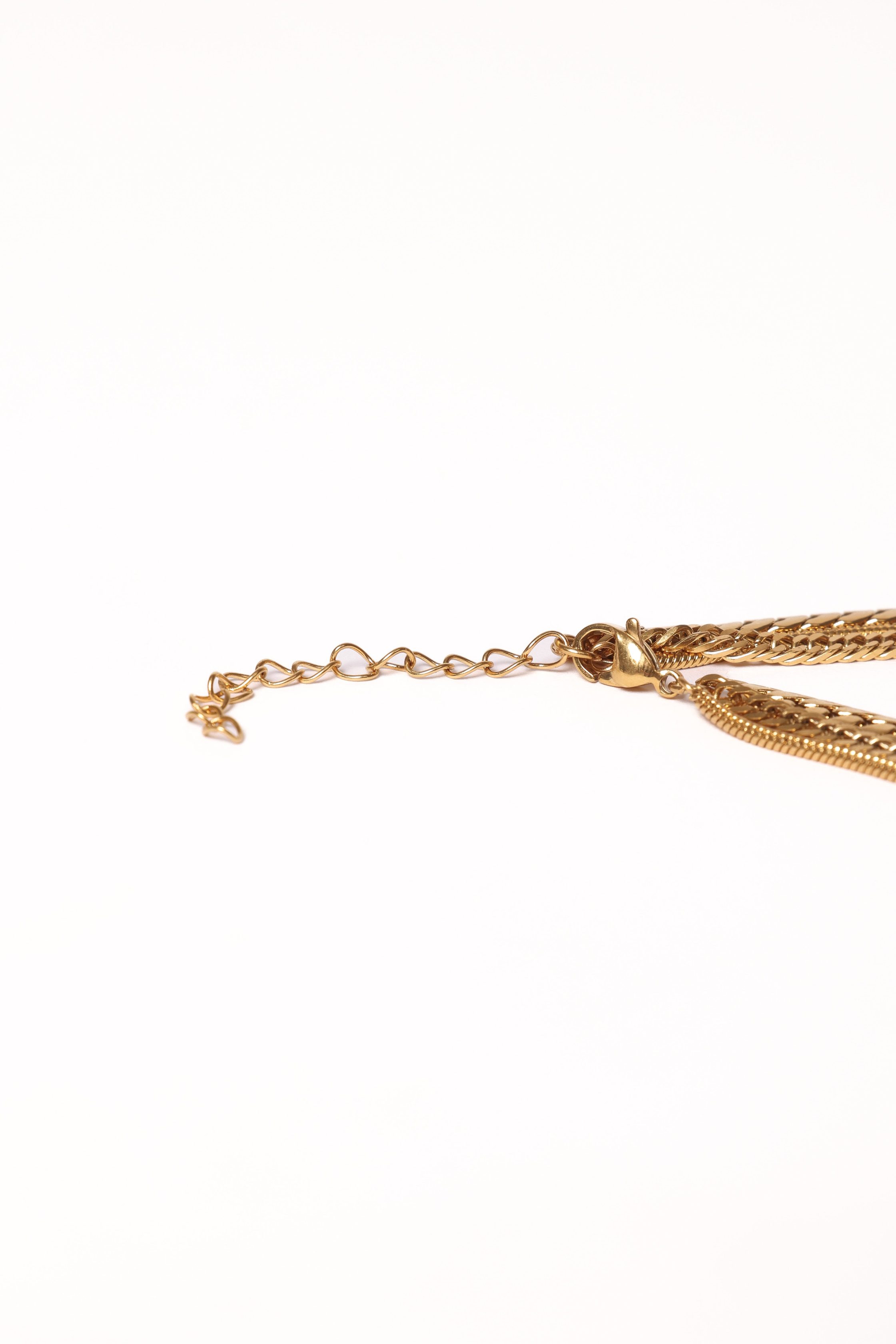 DETAILS Elevate your look effortlessly with the Logan Necklace in Gold, the ultimate statement piece for your accessory collection. This set of three layered chains brings a bold, multi-dimensional vibe with its intricate gold hardware and modern design. set of 3 layered style multi gold chain design gold hardware lobs