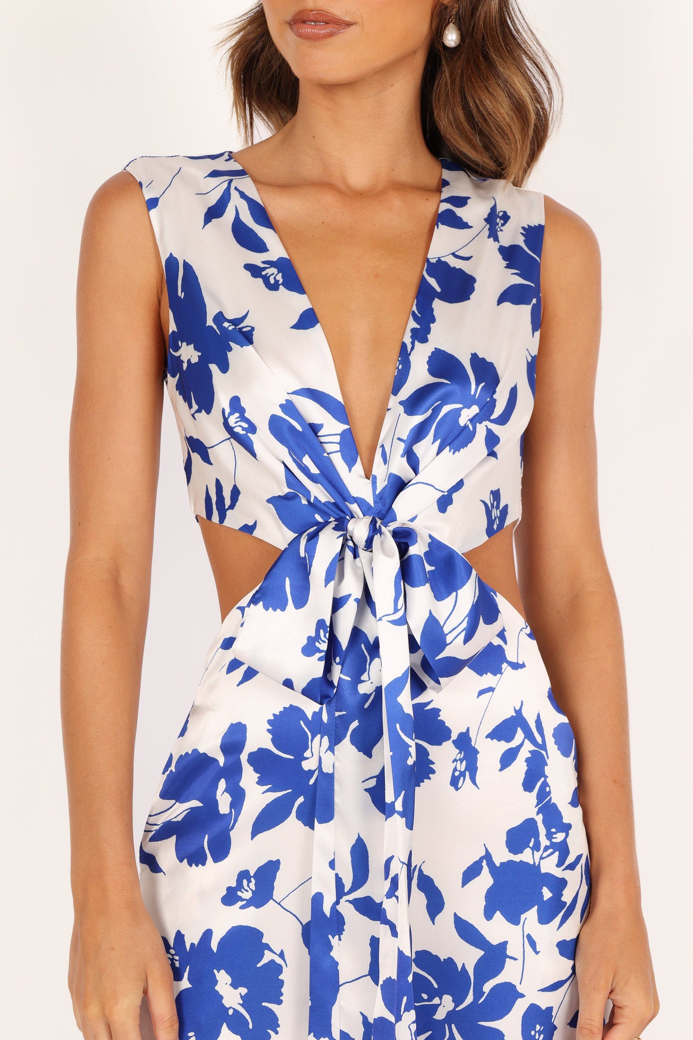 Are you looking for the perfect jumpsuit to take you from day to night? Look no further! Our Lulu jumpsuit is the ideal piece for any occasion. Flaunt it at parties or dress it down with sandals for a day out – either way, you're guaranteed to look chic and stylish! wide leg jumpsuit v neckline back invisible zip with hook and eye clasp attached waist tie for wrap close side cut out detail functional pockets blue floral print soft satin feel lined material – 100% polyester lining – 100% rayon SIZING model is 5' 6" and wears a Size XS model stats: bust – 31", waist – 23", hips – 34" GARMENT CARE cold hand wash separately