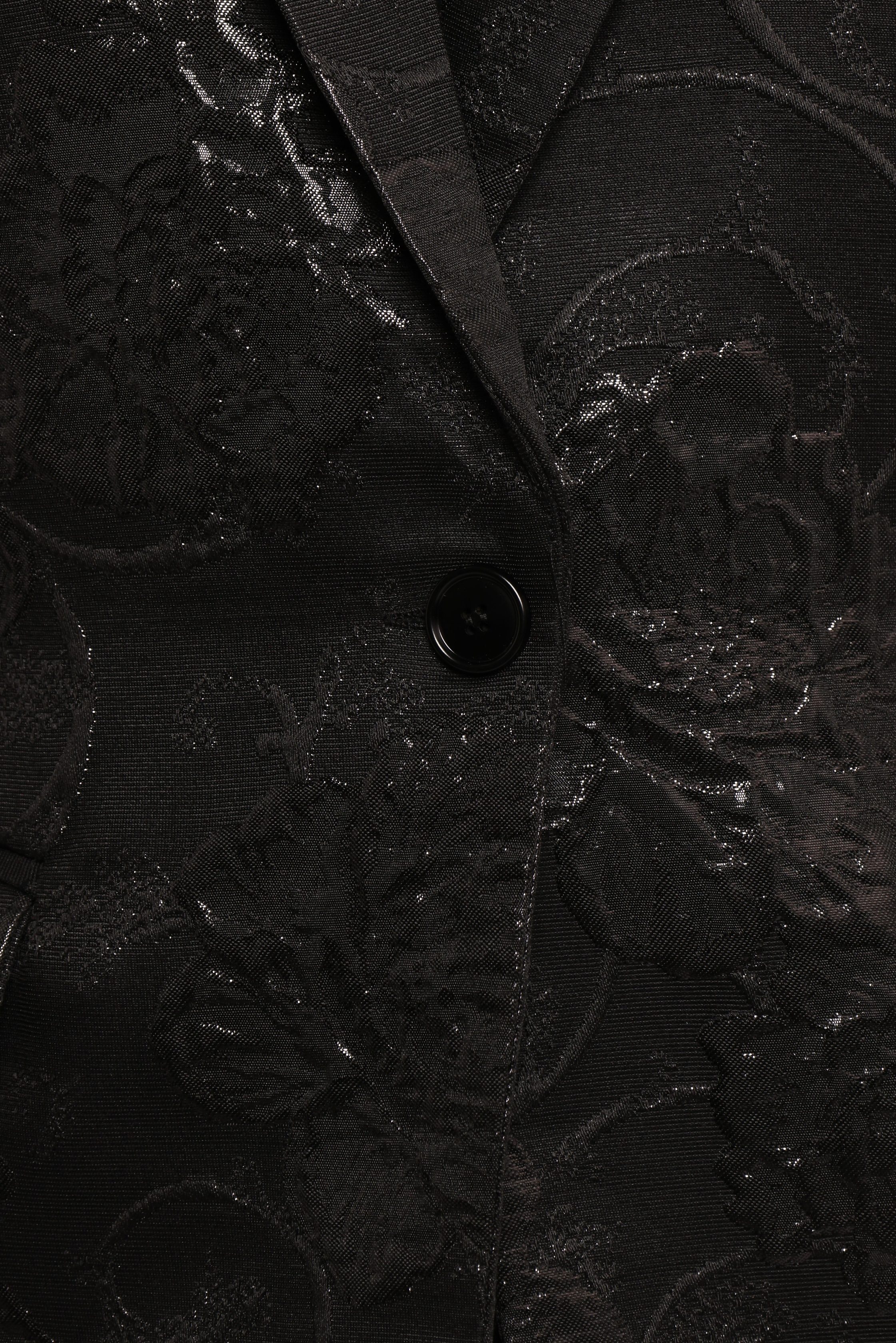Meet the Mossie Jacquard Blazer in Black is the perfect blend of sophistication and modern style for any fashion-savvy individual. With its elegant notch lapel and perfectly structured long sleeves, this blazer commands attention wherever you go. notch lapel long sleeves single button closure functional pockets metallic floral print design lined material – 60% polyester / 20% cotton / 14% lurex lining – 100% polyester SIZING studio model is 5' 5" and wears a Size S model stats: bust – 31.5", waist – 25.5", hips – 36" GARMENT CARE cold gentle hand wash separately