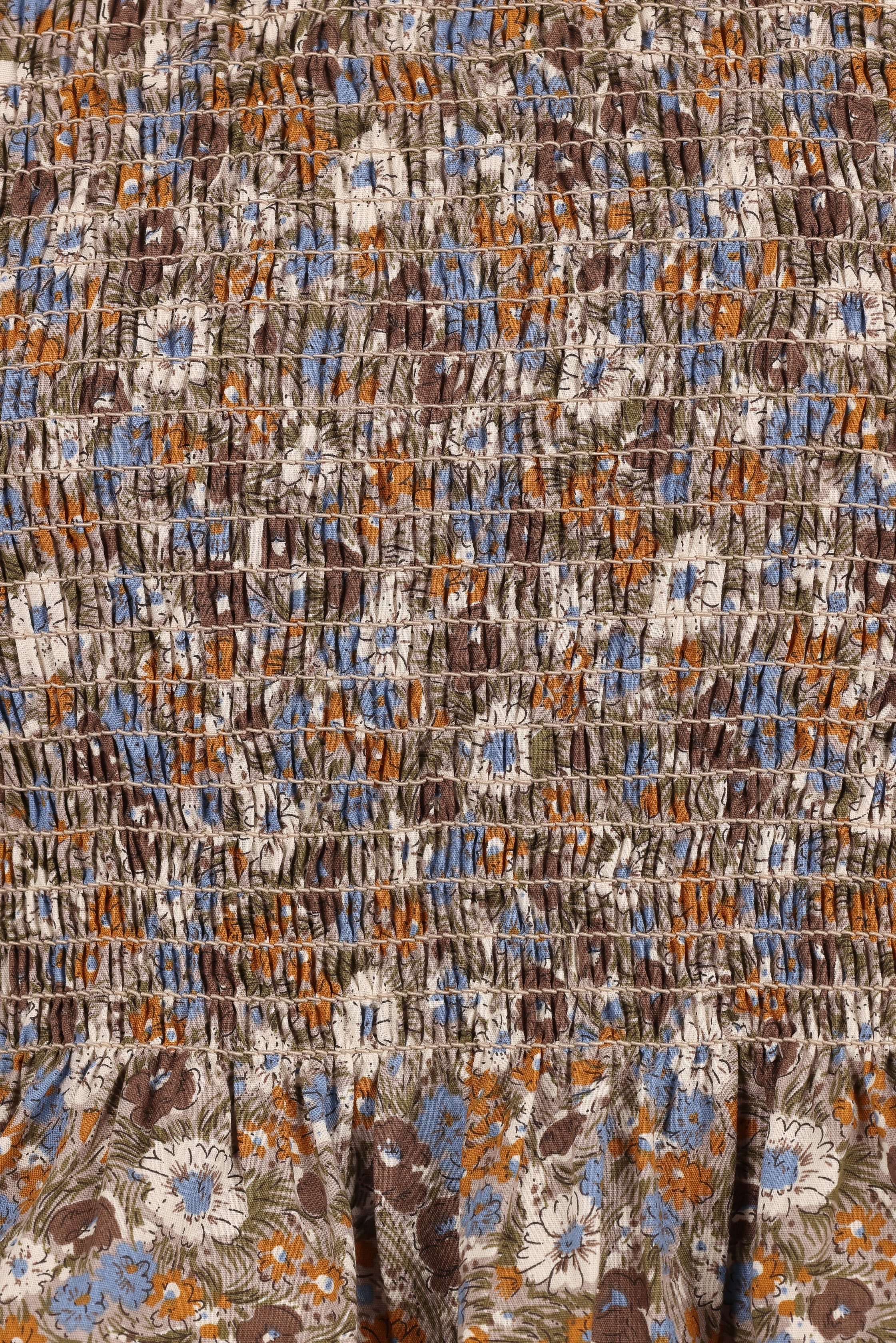Step up your fashion game with our Novah Long Sleeve Top. With its peplum style and round neckline, it adds a touch of sophistication to your everyday look. The long sleeves with shirred ruffle cuffs bring a playful vibe that effortlessly pairs with your favourite jeans or skirt. peplum style top round neckline long sleeves with shirred ruffle cuffs back neck opening with button close shirred bodice peplum ruffle hemline floral print unlined material – 100% cotton SIZING model is 5' 7" and wears a Size S model stats: bust – 33", waist – 26", hips – 38" GARMENT CARE cold hand wash separately