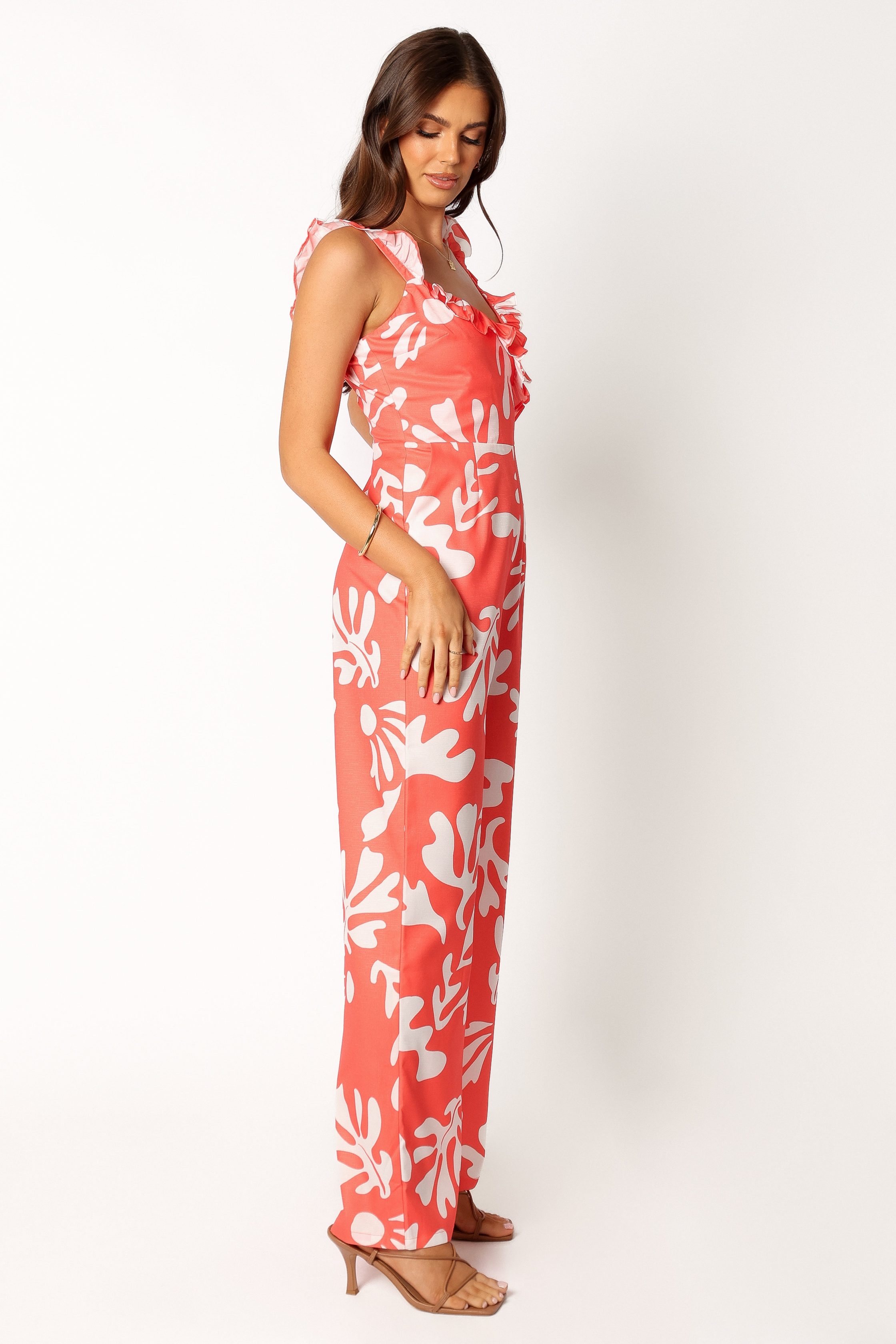 Introducing the perfect jumpsuit for this season – our Payton Jumpsuit! With its playful and trendy design, you'll be sure to stand out from the crowd. full length jumpsuit crossover neckline with frill detail non adjustable straps back invisible zip with hook and eye closure wide leg style pant functional pockets tropical print design partially lined material – 100% polyester lining – 95% polyester / 5% spandex SIZING model is 5' 7" and wears a Size S model stats: bust – 33", waist – 27", hips – 36" GARMENT CARE cold hand wash separately
