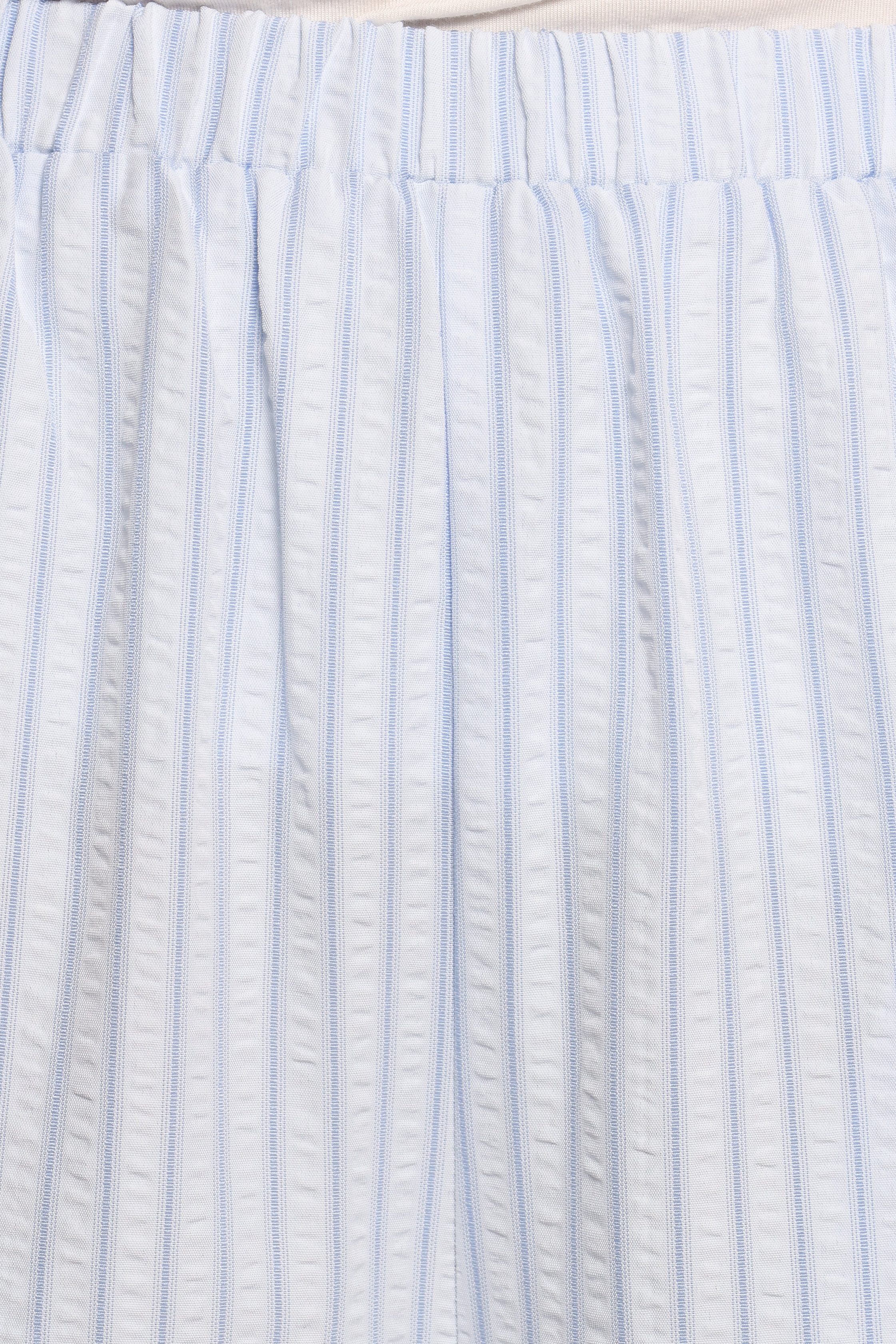 DETAILS Step into effortless chic with the Peyton Striped Pant in Blue. Designed with a flattering high-rise fit and an elasticized waistband, these pants combine comfort and style in perfect harmony. high rise elasticised waist band straight leg style blue stripe print unlined material – 40% cotton / 60% polyester SIZ