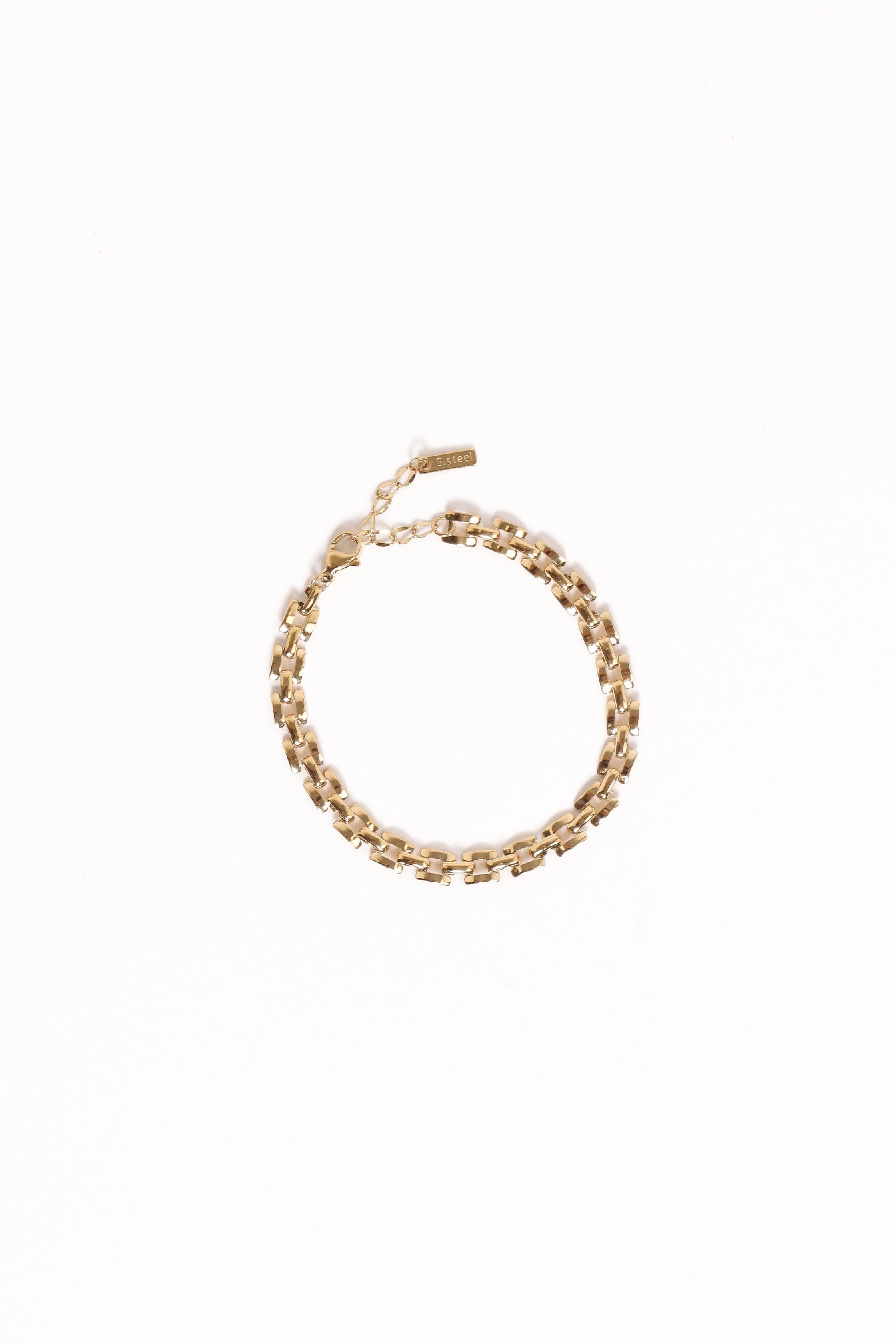DETAILS Elevate your everyday style with the Priya Bracelet in Gold. Its striking square link design adds a modern edge to any outfit, while the gleaming gold hardware exudes timeless sophistication. square link design gold hardware lobster clasp closure extension chain material – 100% stainless steel LENGTH length – 6