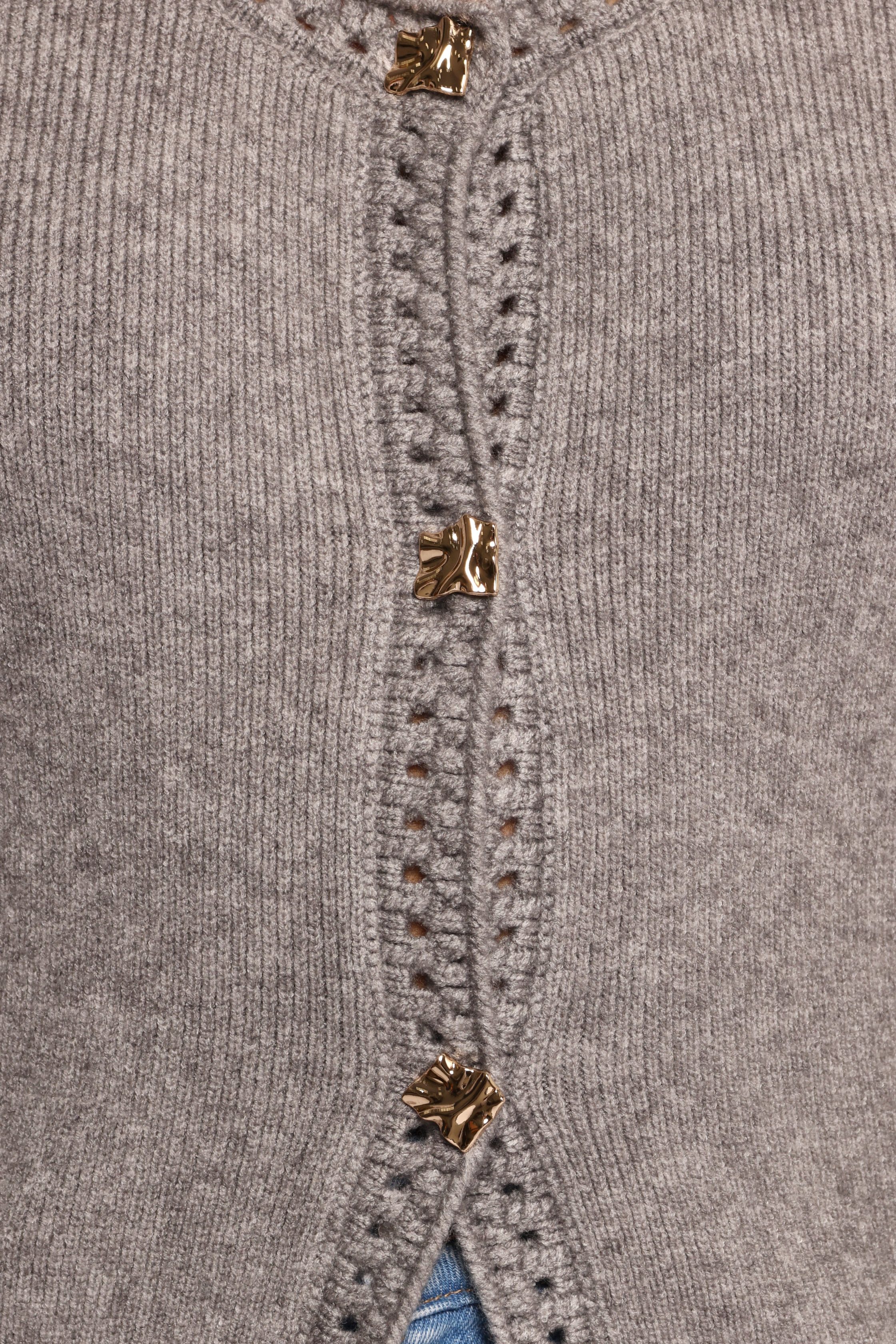 DETAILS Add the perfect blend of comfort and style to your wardrobe with the Quay Button Front Cardigan in Heather Grey. Designed with a chic round neckline and long sleeves, this cardigan is the ultimate layering piece for transitional weather or chilly offices. round neckline long sleeves functional buttons down fron