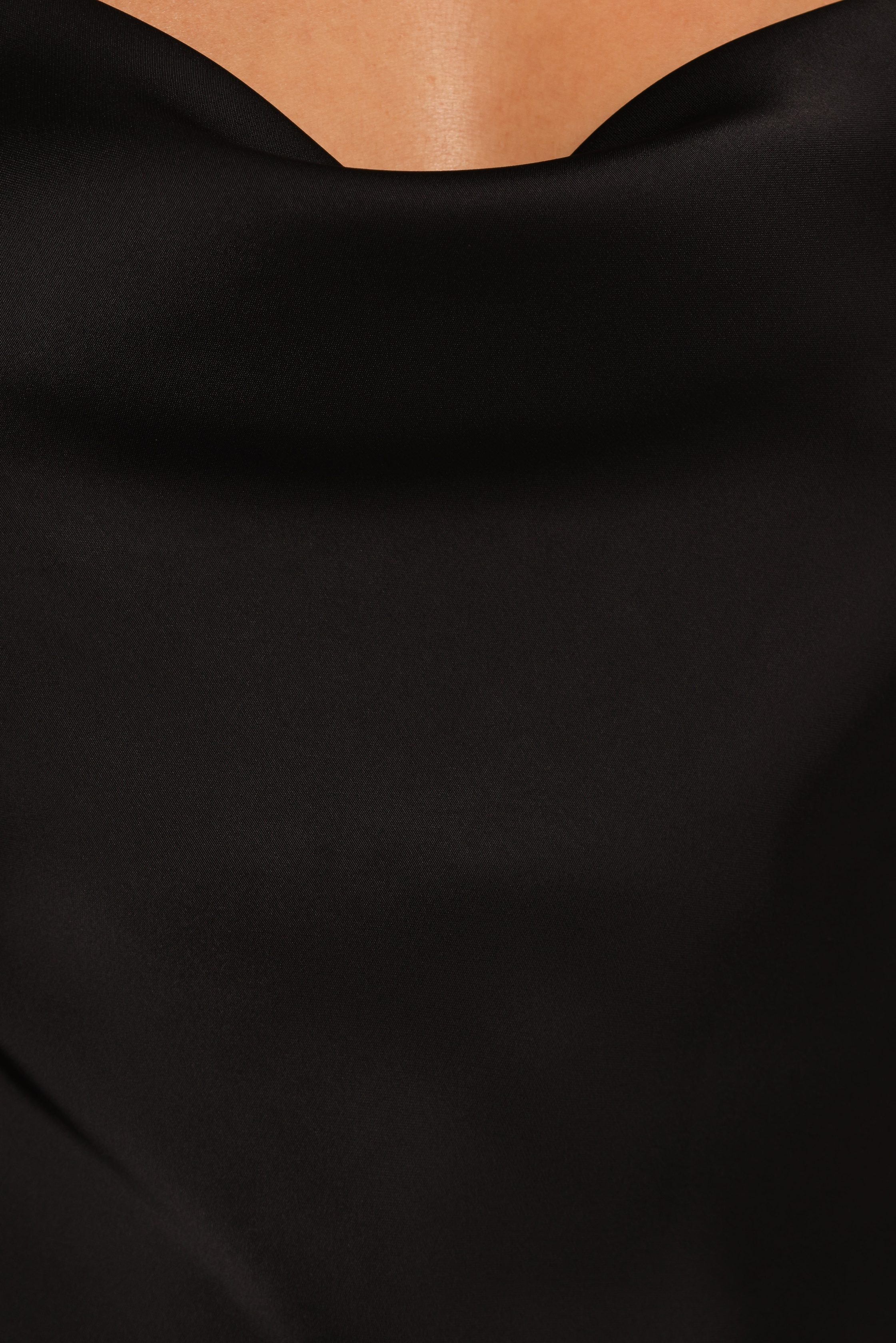 Meet your new go-to dress for every special occasion. Featuring a flattering cowl neckline that drapes beautifully, thin adjustable straps, and a side invisible zip to ensure a seamless look. maxi length cowl neckline thin adjustable straps off the shoulder sleeve feature side invisible zip side split detail satin sheen finish unlined material – 95% polyester / 5% elastane SIZING studio model is 5' 6" and wears a Size S model stats: bust – 30", waist – 24", hips – 34" GARMENT CARE cold hand wash only