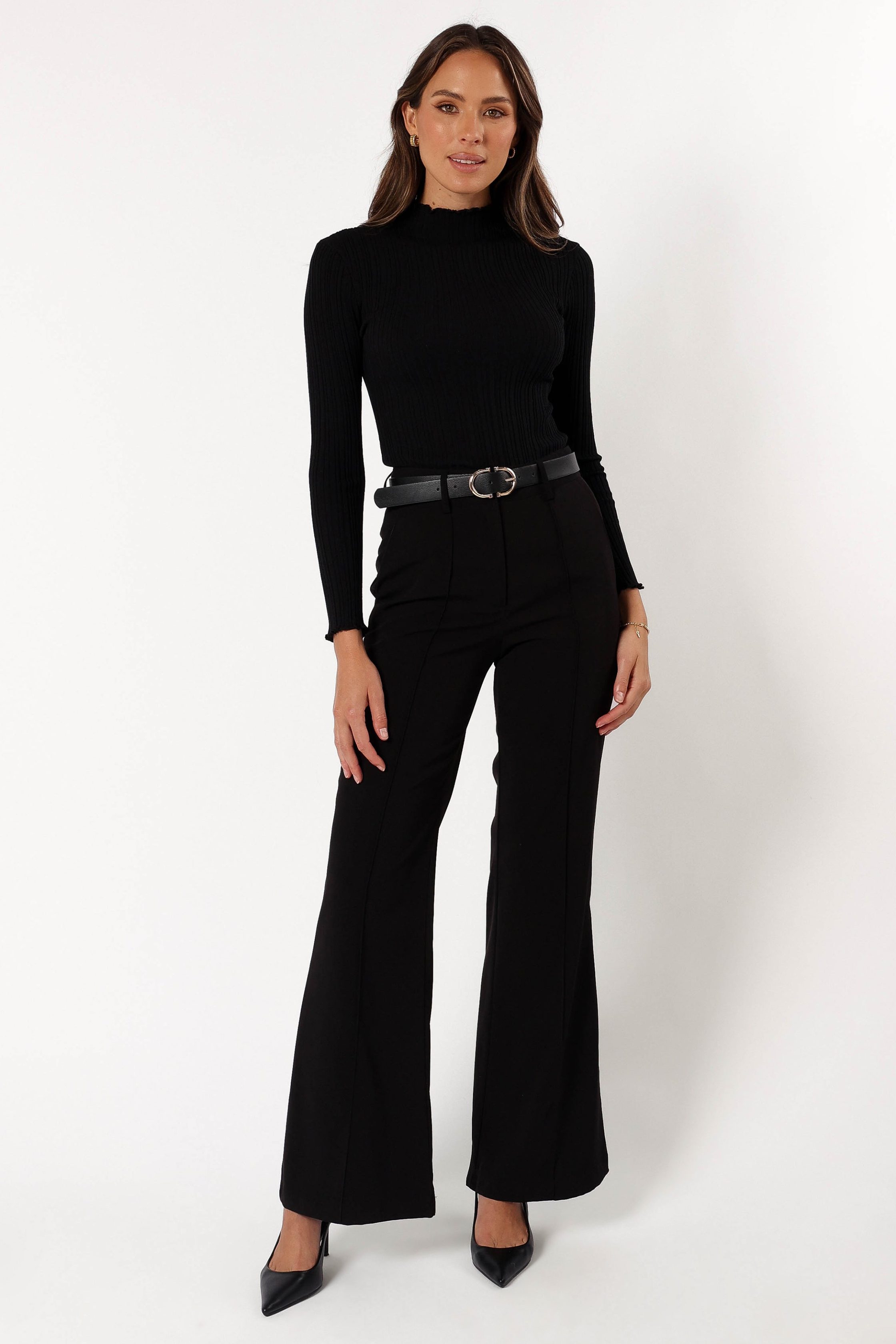 Wrap yourself in the cozy chicness of the Ridley Top, exuding sophistication with its mockneck neckline that strikes the perfect balance between comfort and high-fashion. Engineered with stretch ribbed knit material, this top offers a snug yet flexible fit that moves with you. high mockneck neckline long sleeves with frill cuff stretch ribbed knit material frill hemline detail soft feel unlined material – 60% polyester / 40% viscose SIZING model is 5' 10" and wears a Size S model stats: bust – 33", waist – 25", hips – 37" GARMENT CARE cold hand wash separately