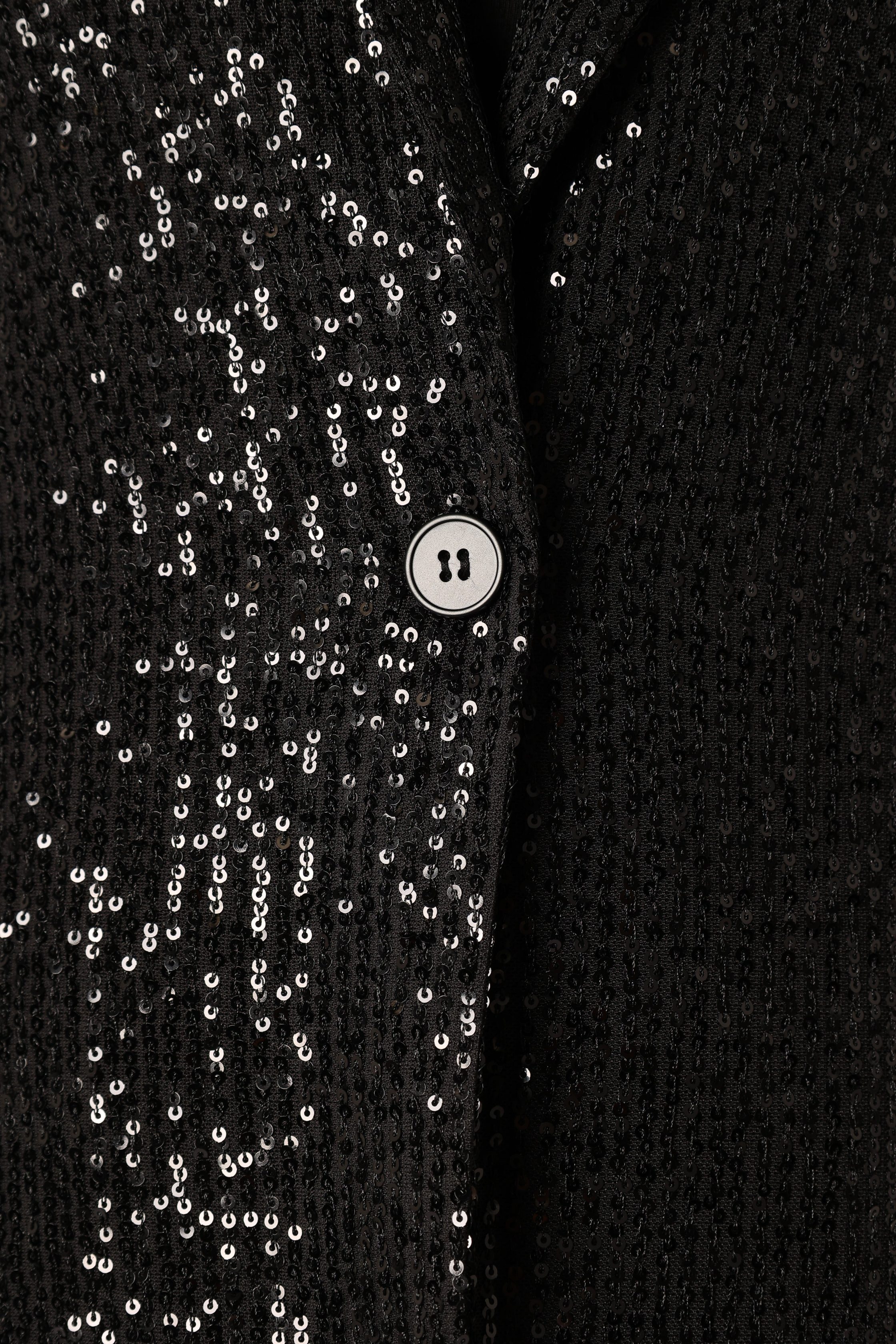 This stylish and trendy piece is a must-have for any fashion-forward individual looking to make a statement. Designed with a collared lapel, long sleeves, and a functional one-button closure, this blazer adds just the right touch of sophistication to any outfit. padded shoulder sequin blazer collared with lapel long sleeves one button close functional front pockets lined material – 100% polyester SIZING model is 5' 10" and wears a Size XS model stats: bust – 35", waist – 26.5", hips – 37.5" GARMENT CARE material – 100% polyester cold hand wash separately