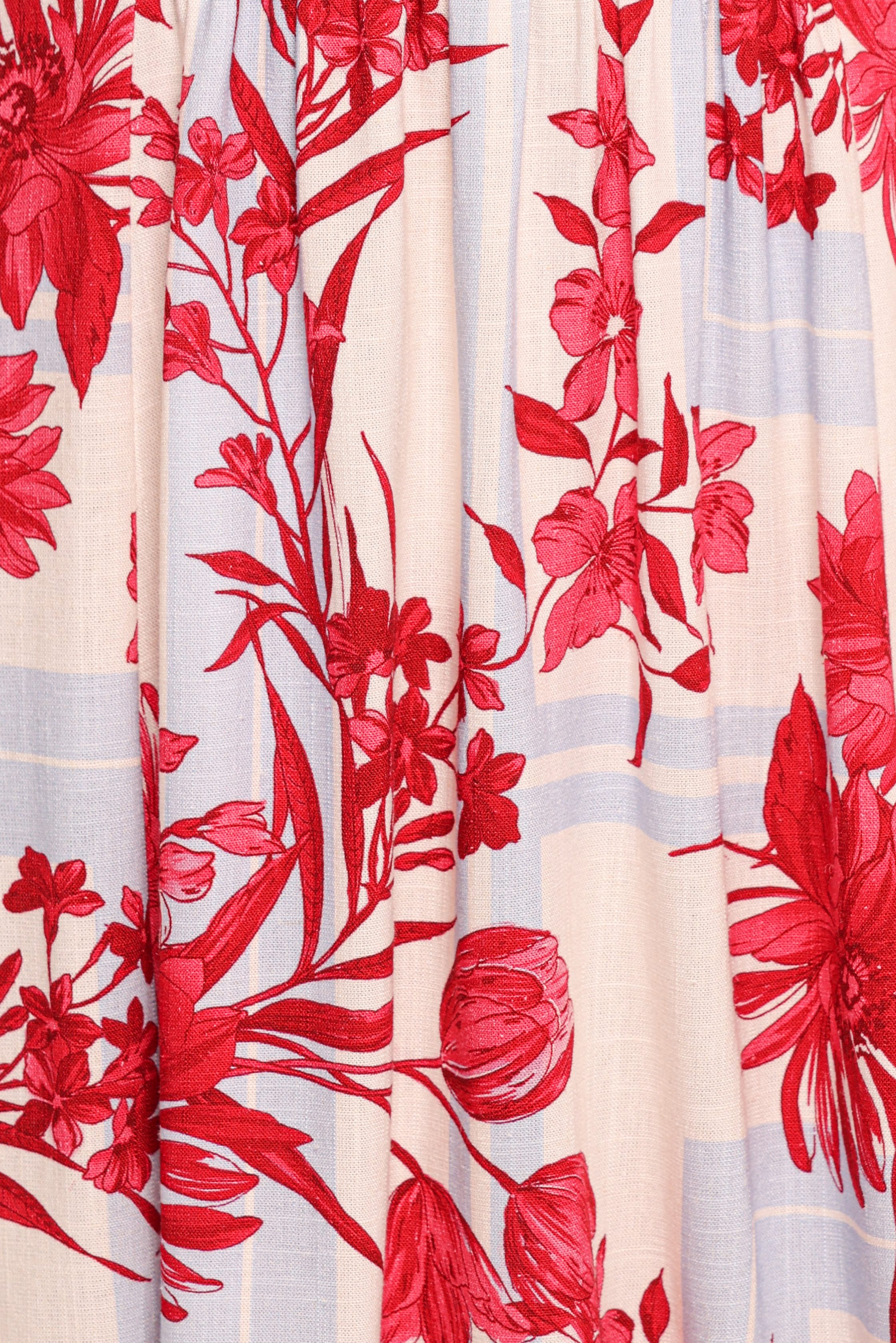 DETAILS Effortlessly elevate your wardrobe with the Simmons Mini Dress in Fuchsia Floral. This chic mini-length dress features a playful floral print that's perfect for everything from brunch dates to garden parties. mini length round neckline short puff elasticised cuffs back neck opening with button close elasticised
