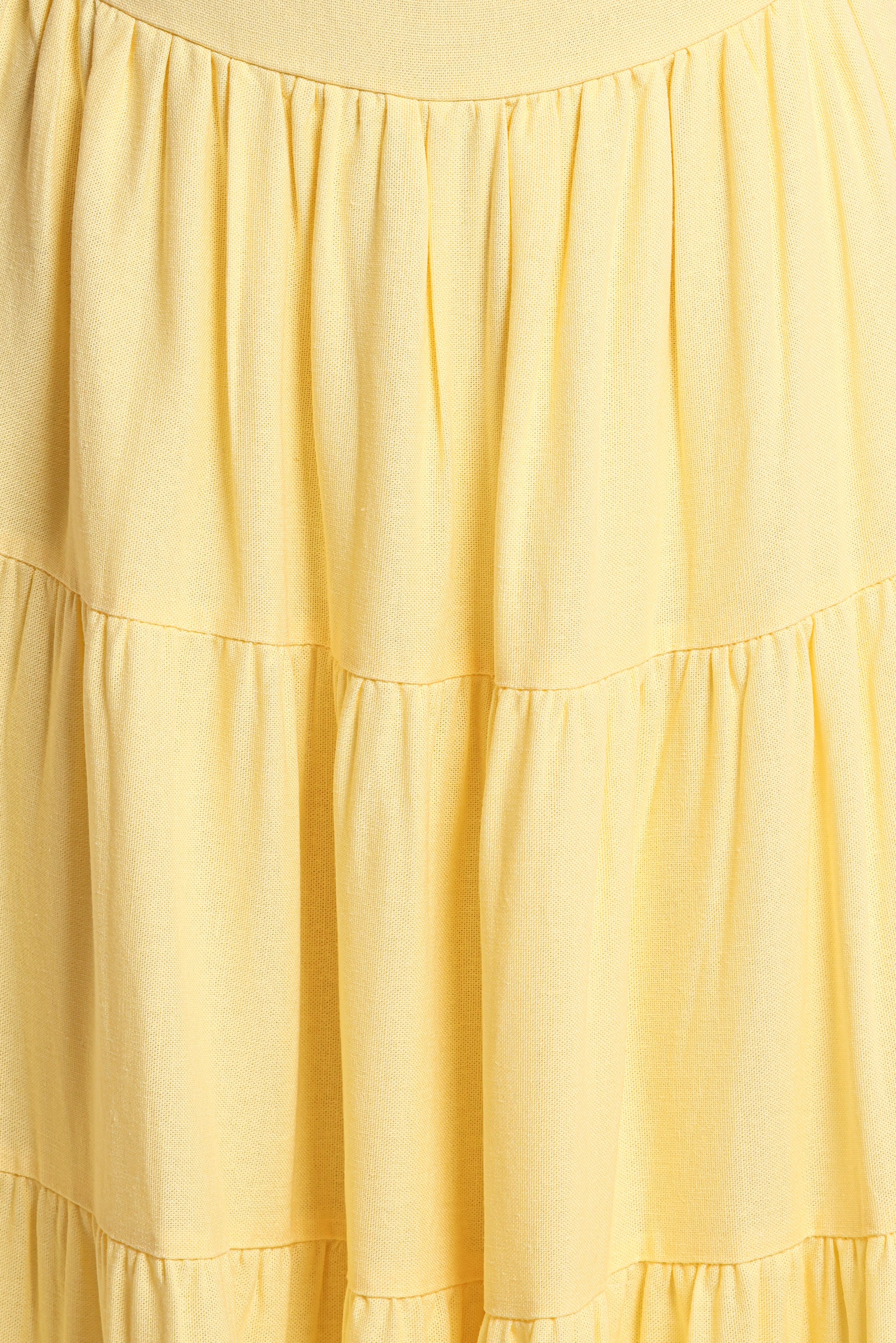 DETAILS Turn heads at every event with the effortlessly chic Sitara Strapless Midi Dress in vibrant yellow. Designed with a flattering strapless silhouette and a sweetheart neckline, this dress combines elegance with comfort thanks to its inner rubber bust grip and elasticised shirred back panel. midi length strapless
