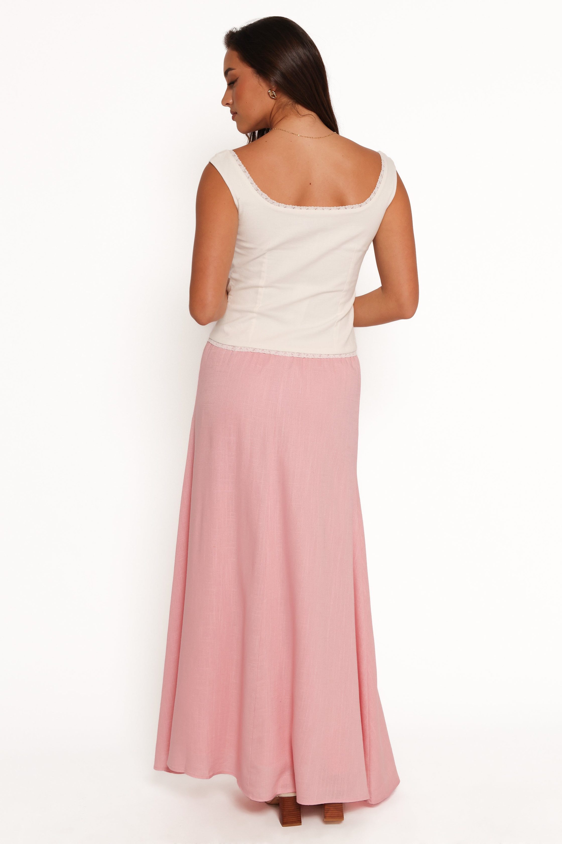 DETAILS Introducing the Stevie Maxi Skirt—the ultimate blend of comfort and style that effortlessly elevates any wardrobe. Picture yourself gliding through your day with ease, thanks to its flowy maxi length and flattering a-line silhouette. maxi length elasticised waist band drawstring tie close a-line skirt design
