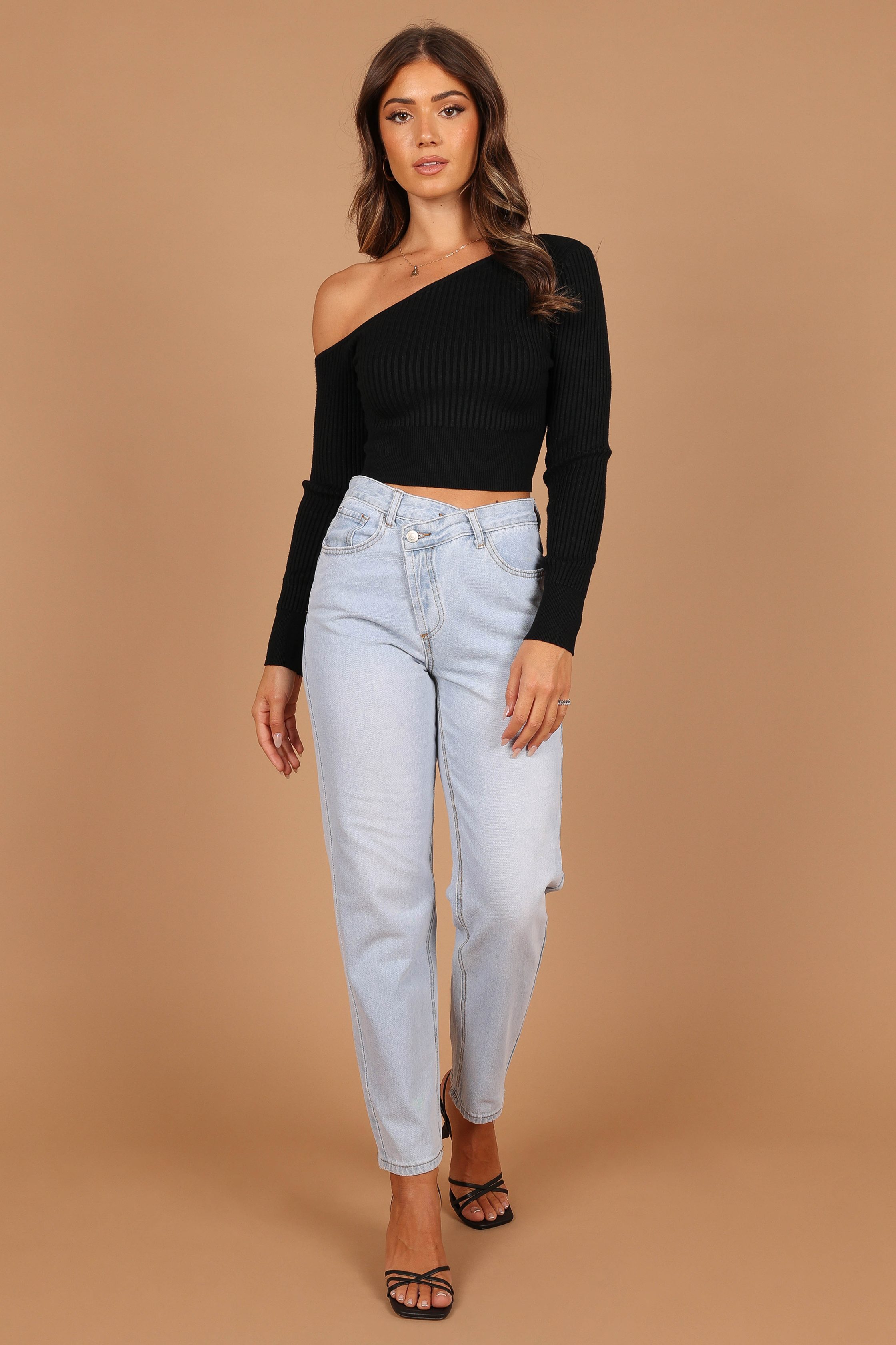 Are you looking for one top that can take you from day to night? Look no further than this one shoulder knit top! Its cropped length, long ribbed sleeves, and ribbed hemline give it a fun and flirty look. one shoulder style knit top cropped length long sleeves with ribbed cuff ribbed hemline stretch ribbed knit slim fit unlined SIZING model is 5' 8" and wears a Size 2 model stats: bust –  – 31.5", waist – 25", hips – 32.5" GARMENT CARE material – 45% rayon / 27% nylon / 28% pbt cold hand wash
