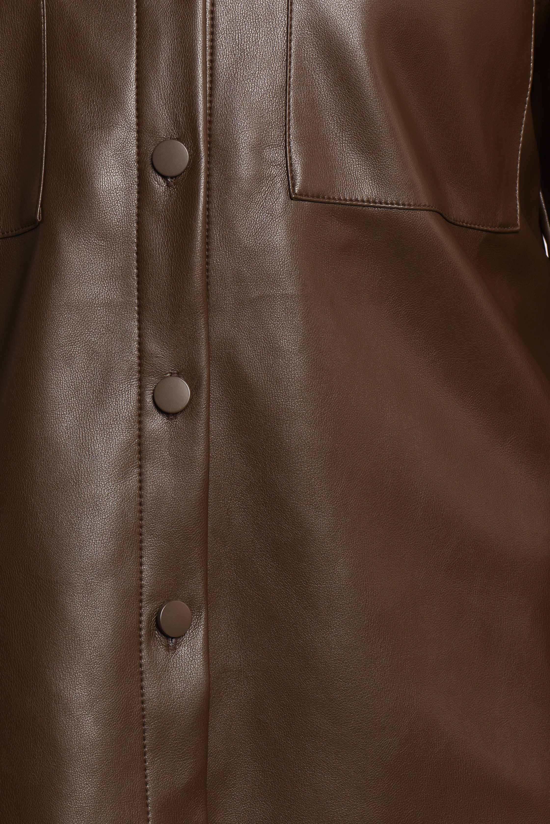 DETAILS Elevate your wardrobe with the Trevira Faux Leather Shirt in a rich, warm brown that's effortlessly chic and edgy at once. Designed with a spread collar and long sleeves, this shirt adds structure and sophistication to any outfit, while the faux leather material brings a modern, polished touch. spread collar lo