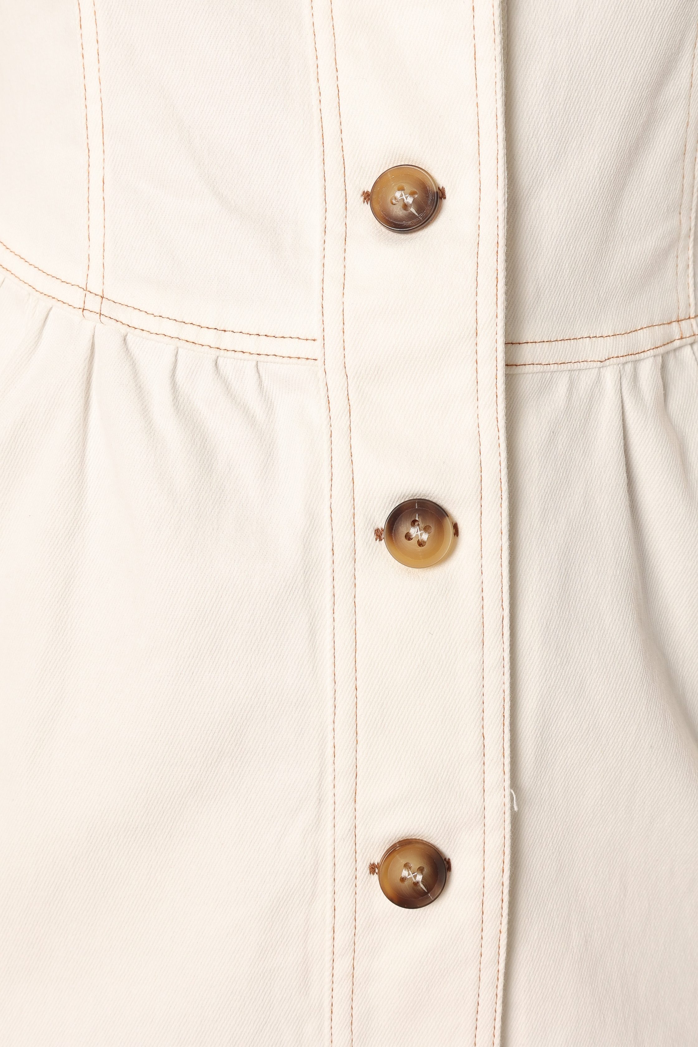 This midi dress in denim is the perfect addition to your wardrobe! It's designed with functional button down close and a collard v neckline. Featuring an elasticised waist for extra comfort. midi length v neckline collard sleeveless design button down close elasticised waist functional front pockets unlined material – 95% cotton / 5% spandex SIZING model is 5' 6" and wears a Size XS model stats: bust – 33", waist – 25", hips – 94 GARMENT CARE cold hand wash separately
