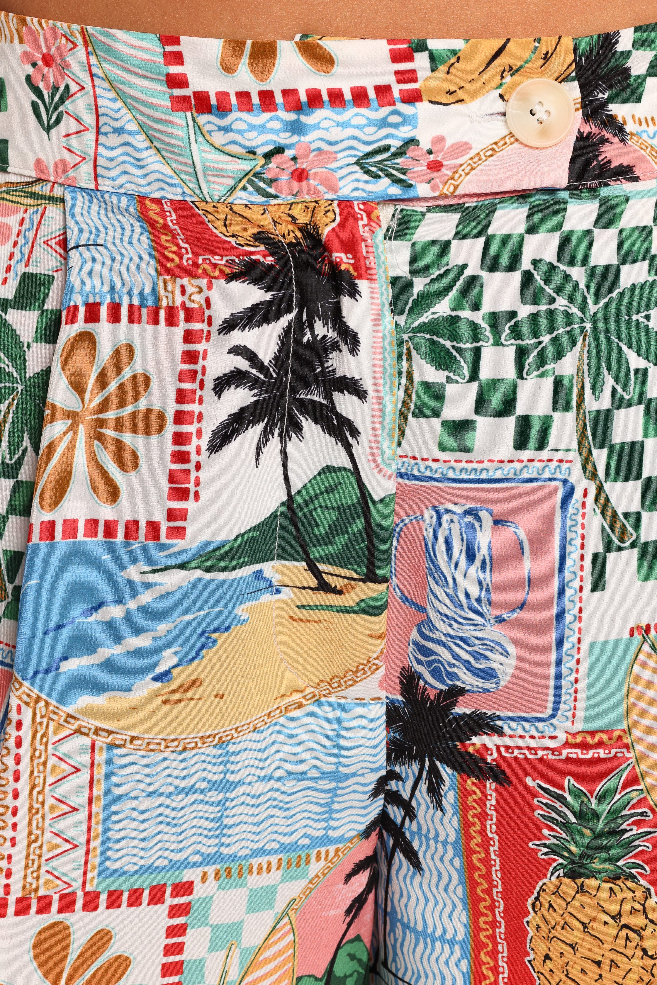 DETAILS Step into effortless summer vibes with the Valeria Pants in Off White Multi. These high-waisted trousers combine comfort and style with a back elasticised waistband and a sleek front zip-and-button closure. high waisted style front fly zip with button close back elasticised waist band functional pockets straigh