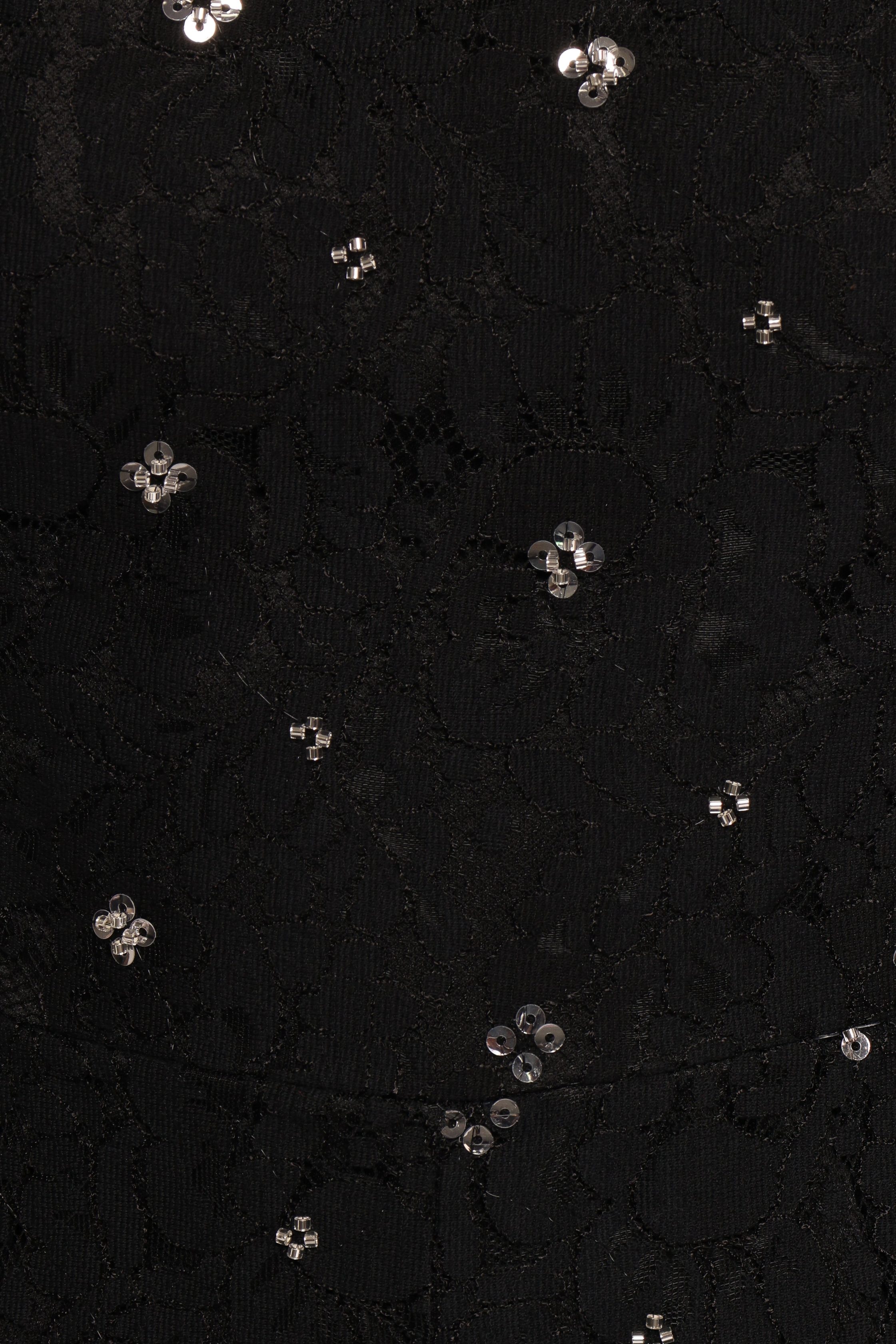 This romper effortlessly balances elegance and edge with its sophisticated square neckline and sheer long sleeves that add a touch of intrigue. A-line shorts with a distinctive front pleat and scallop hem create a flattering silhouette. romper design square neckline sheer long sleeves invisible back zip with hook and eye close a line shorts with front pleat feature scallop hem delicate lace fabric with sequin and bead detail lined / unlined sleeves material – 50% nylon / 50% cotton lining – 100% polyester SIZING studio model is 5' 5" and wears a Size XS model stats: bust – 31.5", waist – 25.5", hips – 37" GARMENT CARE cold hand wash separately delicate fabric may require additional care when washing, including steaming of garment