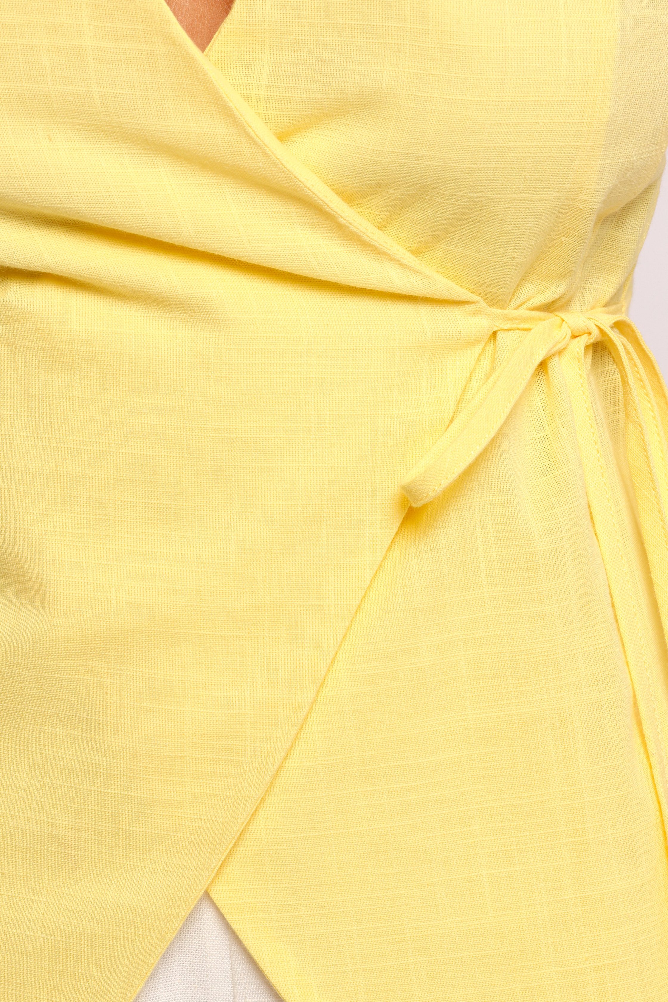 DETAILS This piece is a must-have for those who want to effortlessly blend comfort with style. The top features a chic V neckline that gently frames your face, while its sleeveless design ensures you stay cool on those warm summer days. v neckline sleeveless design front wrap design with tie close internal button close