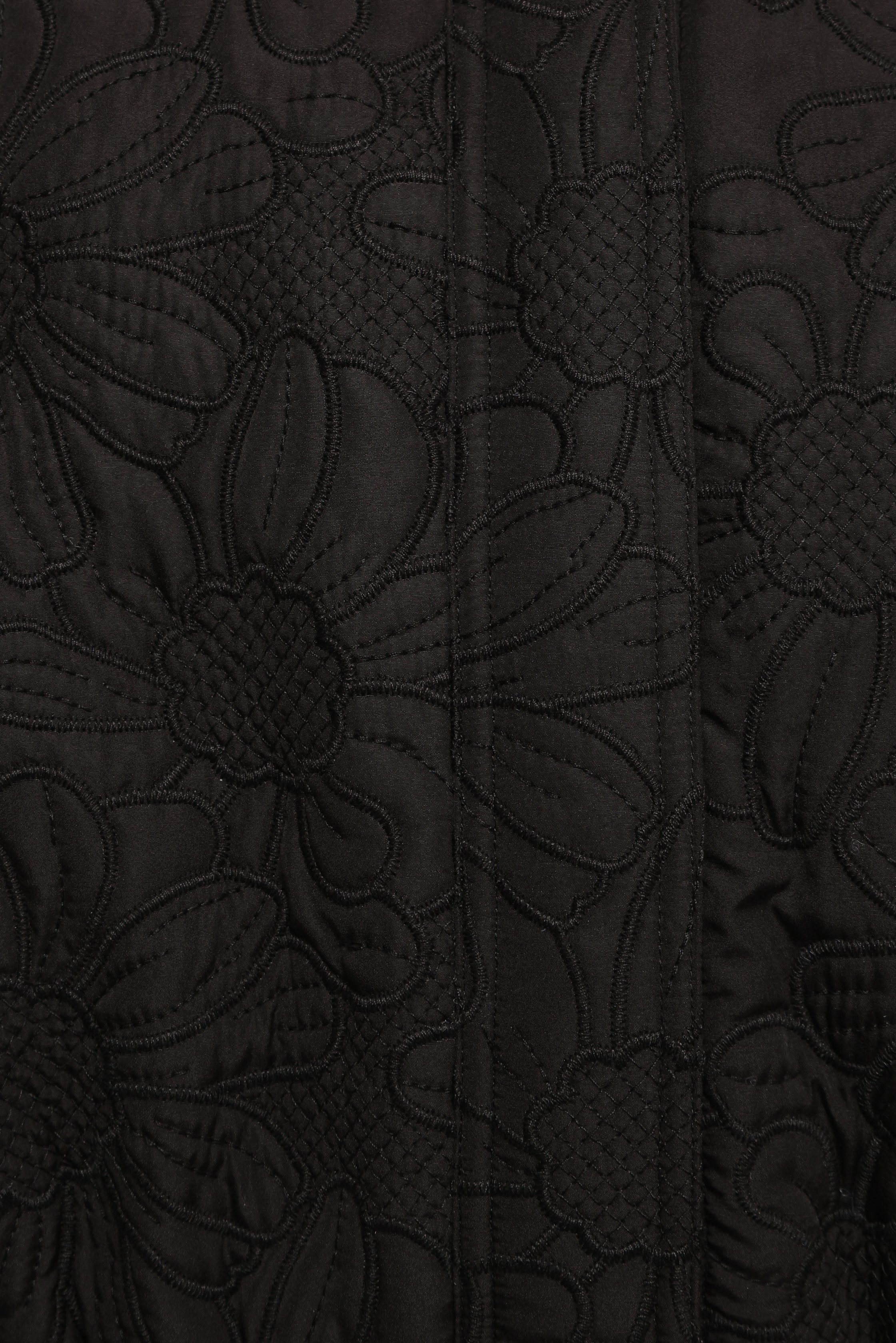Introducing the Yuki Tonal Embroidered Flower Jacket in timeless black, your new go-to piece for a chic yet effortless look. This bomber-style jacket combines classic fashion elements with modern flair, featuring a crew neckline and long sleeves adorned with elasticised frill cuffs for that extra touch of elegance. bomber style jacket crew neckline long sleeves with elasticised frill cuff hidden front snap button close front functional pockets with faux close feature internal elasticised draw string with toggle fastener frill hem detail medium embroidered floral design lined material – 100% polyester / 100% rayon SIZING studio model is 5' 5" and wears a Size S model stats: bust – 31.5", waist – 25.5", hips – 37" GARMENT CARE cold hand wash separately