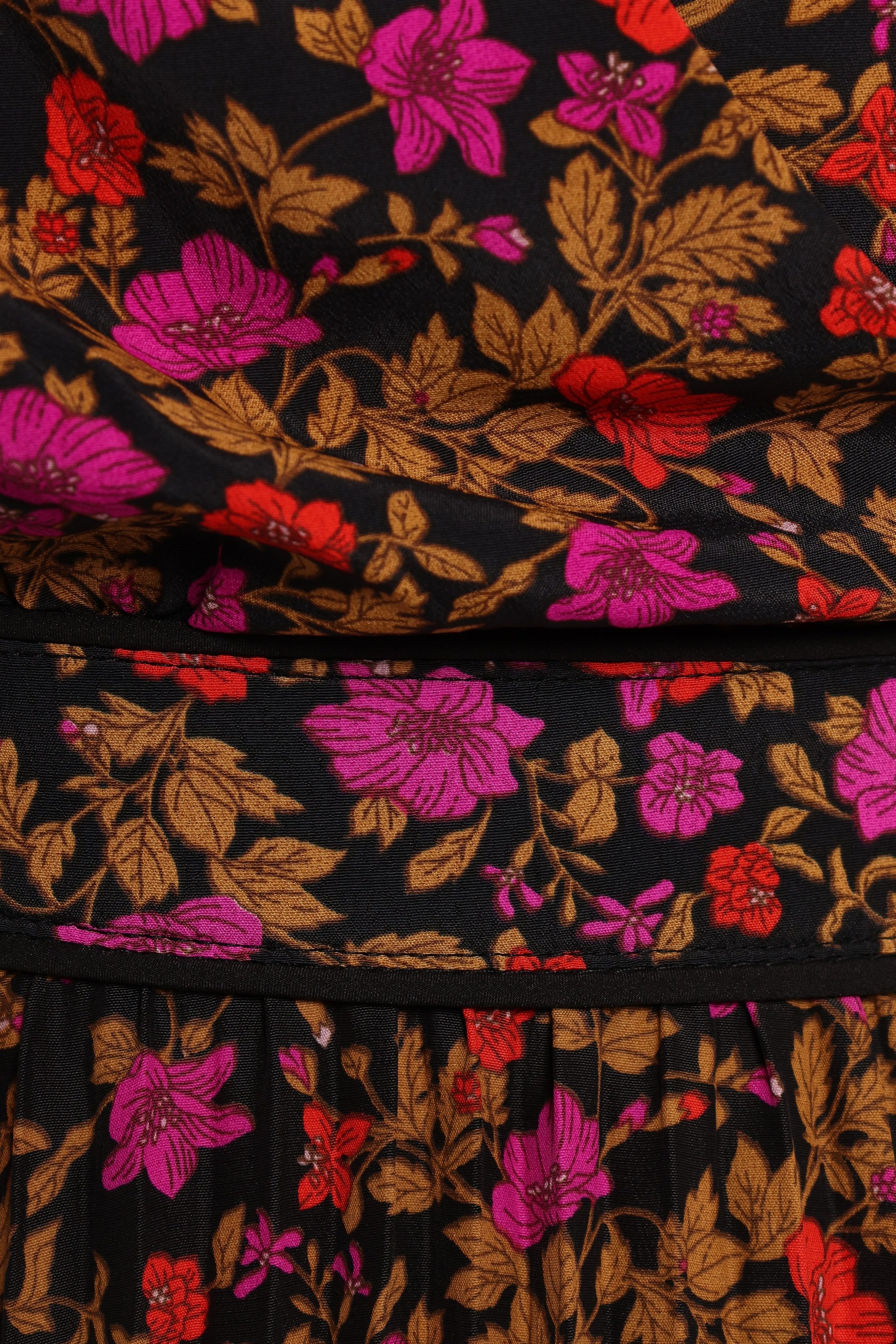 This Floral Mini Dress is more than just a pretty piece. It's a versatile addition to your wardrobe that can be dressed up or down for any occasion. Pair it with some strappy sandals and a sun hat for a day out in the sun, or dress it up with some statement earrings and heels for a night out with the girls. mini length v neckline with button close design long sleeves with elastic cuff elasticised waist at back pleated skirt feature floral print partially lined material – 100% polyester lining – 95% polyester / 5% spandex SIZING model is 5' 7" and wears a Size S model stats: bust – 33", waist – 26", hips – 38" GARMENT CARE cold gentle machine wash