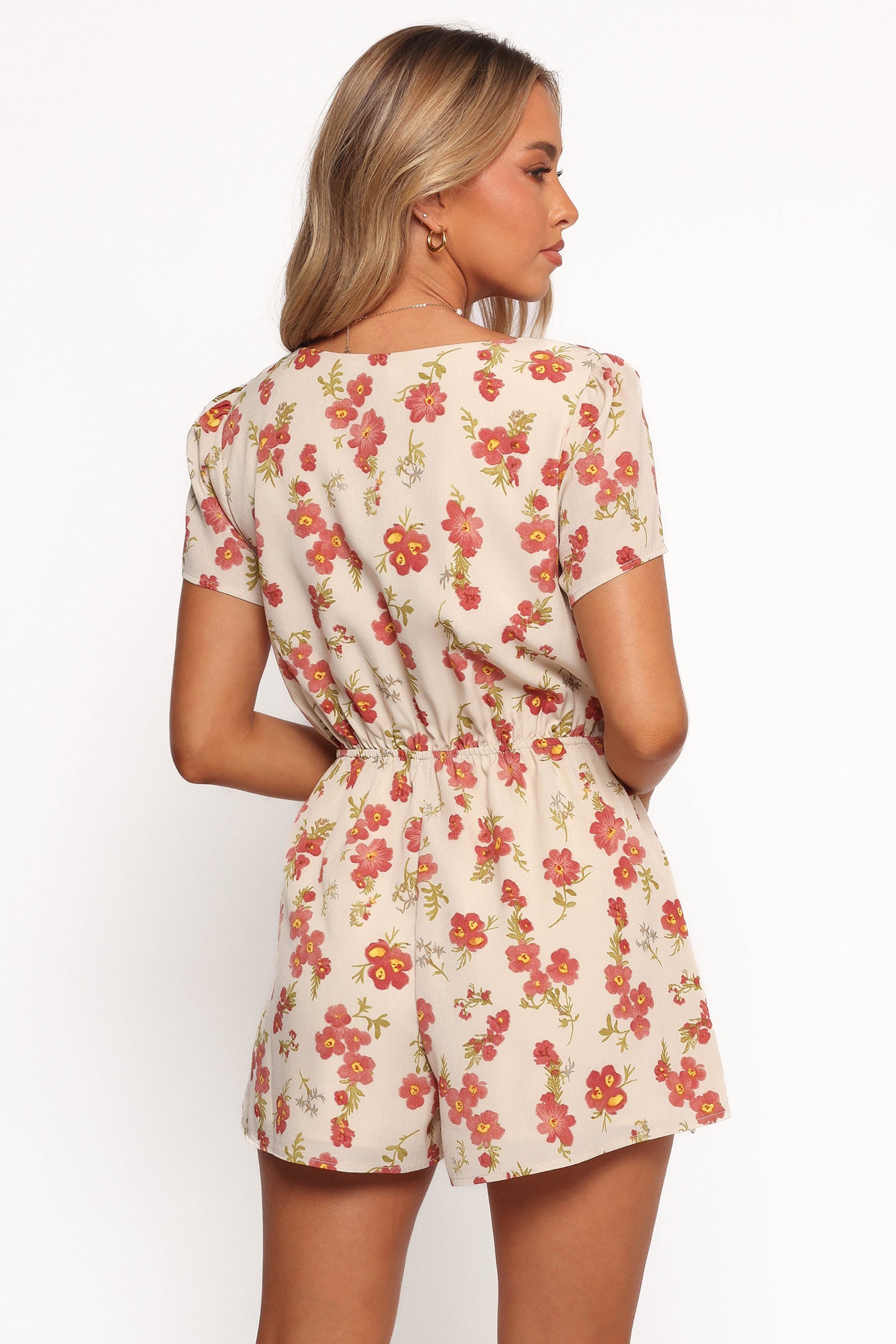 DETAILS Effortlessly chic and designed for everyday comfort, the Zev Short Sleeve Romper in Ivory Floral strikes the perfect balance between style and functionality. Featuring a flattering V-overlay neckline with a discreet press stud, it offers a polished yet casual vibe that transitions seamlessly from brunch to week